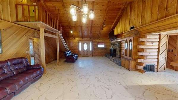 The current owners loved this home and now you have a chance to love it too! Real cut log home with cathedral ceiling and cedar wood interior. Wood logs and insulated windows for energy efficiency, metal roof for years of use, tankless water heater for never ending hot water. A 40 X 72 insulated shop building with 3 phase electric, concrete floor with the makings for a bathroom including an aerobic system. A 40 X 64 engineered metal building with 2 large overhead doors for storing cars, travel trailers, equipment, tractors or anything you can think of. Large horse barn with 6 horse stalls, feed and tack room, lean-to on the side for extra storage. A 300 X 120 lighted roping arena (not sure if lights are in working order) with calf shutes for calf roping. 4 ponds on is nice size and has fishing possibilities. Lots of pipe fencing around the property with several different pastures to move around on.