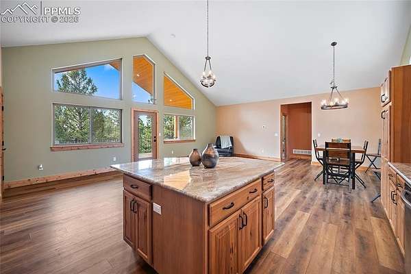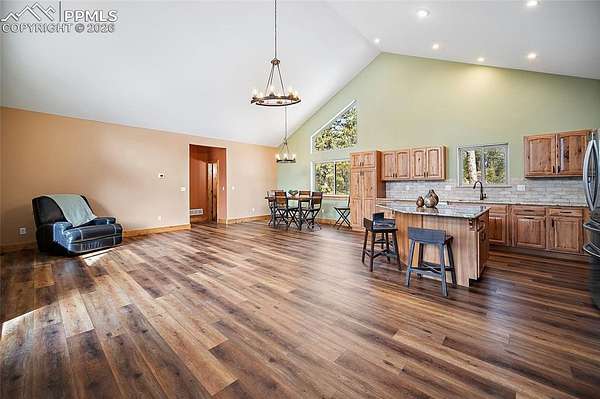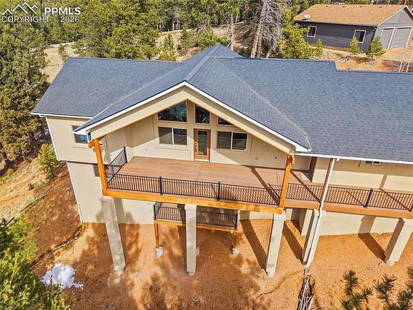 Peaceful Custom Retreat nestled on just over 2.5 tree-filled acres in the desirable Highland Lakes subdivision, this property offers privacy, space, and the benefits of a private mountain community. Residents enjoy access to private fishing lakes and abundant outdoor recreation, making it easy to embrace Colorado's active lifestyle. Built in 2021, this thoughtfully designed 3-bedroom, 2.5-bath home blends modern construction with warm mountain charm. The open-concept layout creates seamless flow between the living, dining, and kitchen areas - ideal for both entertaining and everyday comfort. Lower level has 2 bedrooms, a full bathroom, & a large family room with a walk-out deck. Enjoy expansive deck space designed to embrace the beauty and tranquility of the surrounding landscape. Additional highlights include epoxy floors in the oversized garage and a heater for year-round convenience and comfort, as well as Star Link high-speed internet, allowing you to stay connected while enjoying peaceful surroundings or for those who may work from home. Outdoor living provides inviting spaces to relax, enjoy Colorado sunsets, and take in abundant wildlife. With newer construction, energy-efficient systems, and contemporary finishes throughout, this home offers comfort, quality, and peace of mind. Conveniently located just 45 minutes to Colorado Springs and a short drive to Woodland Park, you can enjoy peaceful acreage living while remaining close to shopping, dining, and everyday amenities.