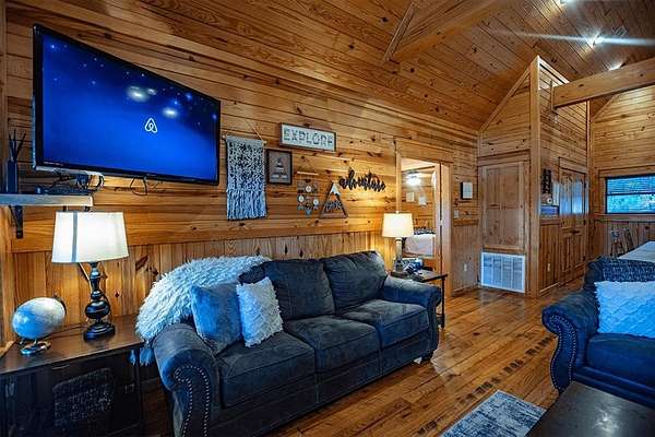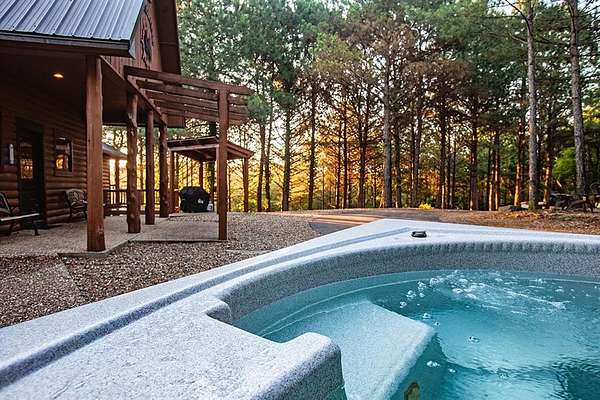 For Sale 4 Bed, 4 Bath cabin in Broken Bow, OK the STR cabin Gallo Del Cielo, a premier 4-bedroom, 4-bath cabin. With 20-mile panoramic views, rustic charm, and modern amenities, this retreat is designed for families, groups, and outdoor enthusiasts. Inside, you'll find native hardwood floors, vaulted ceilings, and a spacious living room anchored by a stone fireplace reminiscent of a Rocky Mountain lodge. Each king suite features a private full bath, while additional sleeping space with twin rollaway beds allows accommodation for up to 10 guests. Outdoors, enjoy a large hot tub under the stars, a covered cooking patio with gas and charcoal grills, and an expansive wrap-around deck perfect for soaking in the stunning surroundings. Bring your UTVs and ATVs, so you can explore scenic trails without trailering. Ride straight from the property to Mountain Fork Brewery, Hochatown Distilling Co. all without ever getting on the highway. Located in the exclusive Timber Creek Trails development, Gallo Del Cielo is just minutes from Broken Bow Lake and Beavers Bend State Park where you can enjoy fishing and water skiing. With ample parking and a circle drive, it's the perfect blend of convenience, privacy, and adventure.