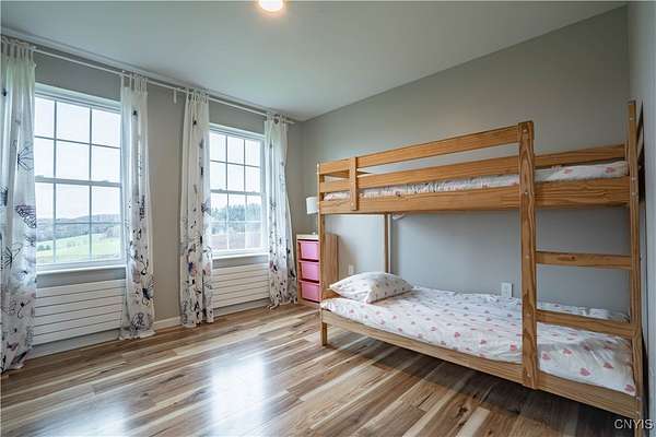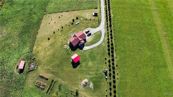 Welcome to 367 Filburn Road in Richfield Springs-a peaceful country escape set on 11.18 rolling acres where open skies, quiet fields, and distant hills create a backdrop that feels like a postcard. This modern ranch blends simple country living with quality workmanship and thoughtful detail throughout. Offering 3 bedrooms, 2 bathrooms, and 1,456 sq ft of single-level comfort, it's a home where mornings begin with sunlight pouring through the windows and evenings end on the deck watching the sky glow over the hills. The great room is warm and inviting with vaulted ceilings, wide-plank floors, and a full wall of glass framing panoramic views. The kitchen has rustic-modern charm, featuring stainless steel appliances, a marble tile backsplash, and rare bonus storage including walk-in closets in the kitchen and hallway. All three bedrooms include walk-in closets, with the primary suite set privately at one end of the home. Efficient European hot water radiators and a tankless propane combi-boiler keep the house cozy with smart, low-maintenance heat. Hardie fiber cement siding adds durability, and the home just passed a new electrical inspection, including updated arc-fault breakers, outlets, switches, and lighting fixtures. The land is where this property truly shines. Over 100 established Christmas trees line the driveway and set a beautiful country scene. The electrical fencing-only a few years old-is perfect for cattle, horses, or other livestock. There's also an insulated walk-in chicken coop already in place. A rustic cabin/shed sits just uphill from the home, unfinished but with underground electric, water, and sewer already run to it, plus an RV dump station. Finish it into a guest bunkhouse, workshop, or studio. With long views, fresh air, and room to roam, this is true country living without isolation. Only a short drive to Richfield Springs, Cooperstown, and Herkimer, the location offers both privacy and convenience. Whether you're dreaming of a hobby farm, gardens, animals, or just a quiet slice of Upstate land, 367 Filburn Road is a property that feels like home the moment you arrive.