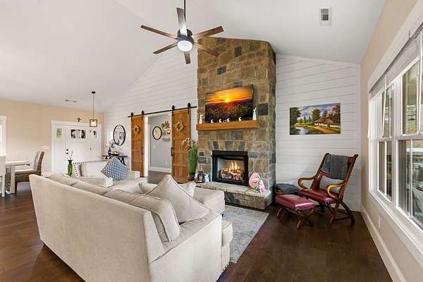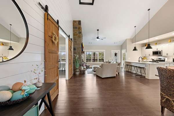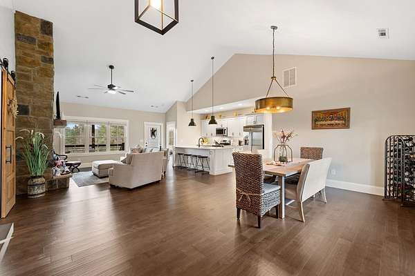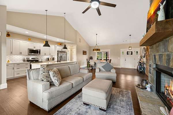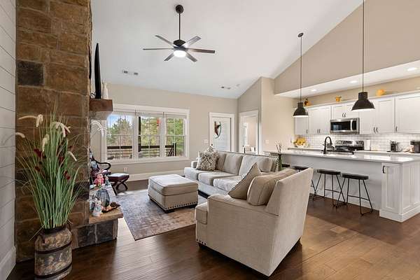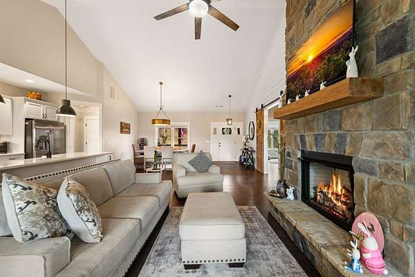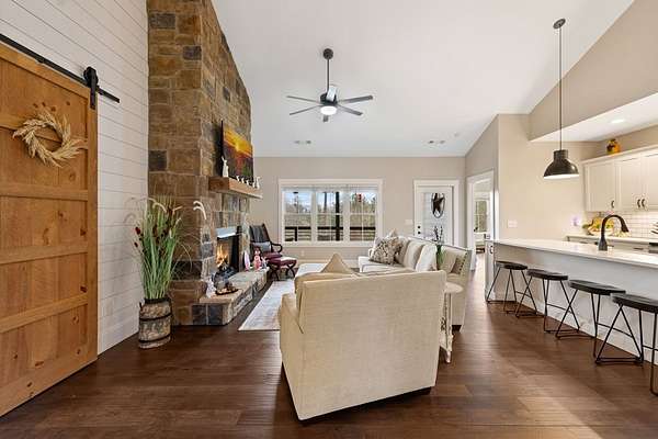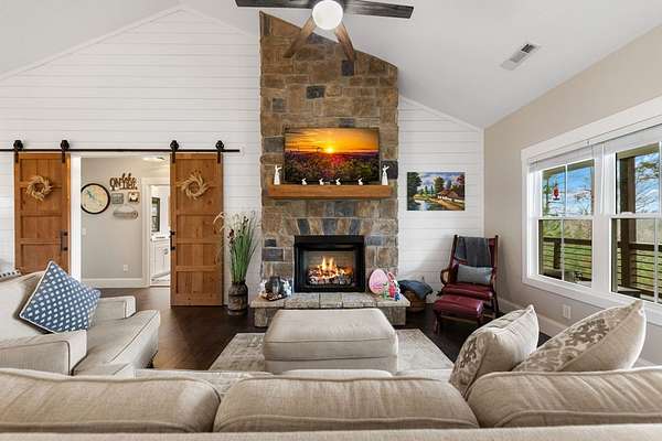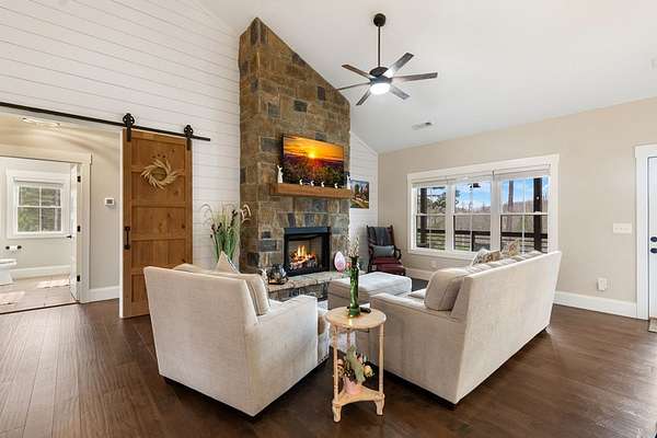 Welcome to Highland Park! One of the most sought-after neighborhoods in Blairsville. You'll be impressed right away by the gorgeous landscaping and extremely manicured yard, as well as the newly sealed asphalt driveway. Absolutely one of the best yards in the community. Come on in! You will feel right at home as you walk into this immaculate kept home. As you walk through, notice the beautiful shiny LVP floors throughout, high vaulted ceiling, and open floor concept. Next, sit down and get cozy with a book or drink of choice in front of the stunning, stoned fireplace. Right away you will notice the beautiful custom barn doors, one of many focal points in this exquisite home. Behind the custom-built barn doors, you have a guest bath with subway tiled shower, vanity with quartz countertop, and linen closet. On each end of the hallway, you will find sizeable bedrooms, both equipped with his and hers closets. Notice the kitchen is furnished with high-end stainless-steel appliances, stunning Quartz counter tops, island, pantry and so much storage! Very roomy dining area, sizable enough to fit any length table and chair set and still have plenty of room. Off the kitchen, you will be amazed by the large master suite. This room has a sitting area comfortably positioned for relaxing and watching tv, a Grand Master bathroom with double vanity and quartz counter tops, subway tiled shower, linen closet as well as walk in closet. Off the kitchen and dining area, you walk through the mud room/laundry room to go out to the 2-car garage. Don't forget to make your way around to the private back yard and fire pit area. Great for sitting back and unwinding with friends, or just star gazing for fun and relaxation. The home has a tall walk-in crawl space area, large enough to house a riding lawn mower while still having tons of extra storage space for all those totes and yard tools. PLUS: This home also comes with Lake Nottley access, Private Community Club House and Community pool.