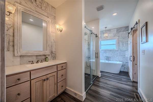 Custom Built 4 bed, 4 bath, 2-level home sits on 10 acres -Features a pretty tree lined driveway & pasture... perfect for Hobby Farm. Primary suite w/solid oak floors, bathroom w/ walk-in Onyx shower, oak linen cabinets & Oversized tub. Kitchen w/ solid oak custom cabinetry, huge island -features a one-of-a-kind built-in dining table that pulls out, granite countertops, farmhouse sink, solid walnut shelving, black stainless appliances & custom oak floors. Great room w/ vaulted ceiling, walnut log mantle beam, cobblestone brick hearth,wood burning fireplace. Plus A 2nd bdrm on the main level! Mudroom/pantry has Wall to wall custom cabinets! Attached 2 car garage - heat/cooled & an insulated & drywalled loft . Outdoor Areas- screened in porch, concrete decks & patios, front porch w/stamped and colored concrete. Lower Level features a family room with/ full kitchen! Attached pool house w/2 dressing rooms, salt water in-ground pool, glass garage door for indoor/outdoor living, Bluetooth speakers, independent HVAC. Plus 2 beds with ensuites & storm shelter/storage room that is enclosed in concrete & has a sink & ventilation. 20+/- min from Osage Beach & Jefferson City.