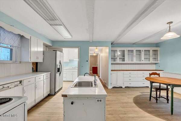 Set on a peaceful 12-acre wooded lot, this charming farmhouse at 367 Jones Hollow Road is full of character and ready for a new vision. With classic details and solid updates already in place, this property offers an exciting opportunity for those looking to restore and reimagine a country home. Inside, you'll find beautiful built-ins in the kitchen, a butler's pantry, and a layout that provides flexibility and space. The home features two bedrooms on the main floor, two additional bedrooms upstairs, plus bonus space ideal for a potential fifth bedroom, office, or creative retreat. A full bath and half bath serve the home, most windows have been replaced, and both the roof and furnace were replaced five years ago, offering a strong foundation for future improvements. Outdoors, the land truly shines. The 12 acres are dotted with established plantings including raspberries, grapes, elderberries, and asparagus that returns year after year, creating a setting perfect for gardening, homesteading, or simply enjoying nature. A gazebo on the property offers a quiet place to relax, while a barn located across the street adds to the rural charm and potential functionality. This property is ideal for buyers seeking space, privacy, and character, with the opportunity to renovate and make it their own. A rare chance to bring new life to a classic farmhouse in a beautiful Petersburgh setting. Sold as is.