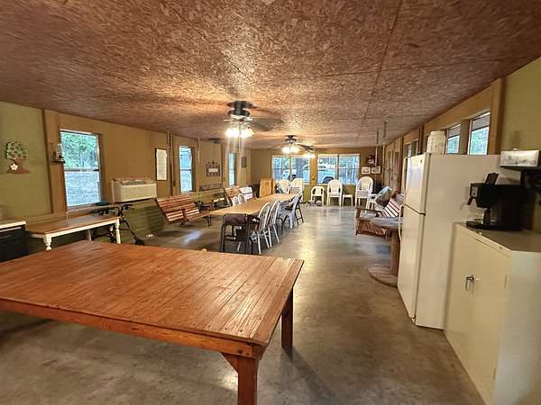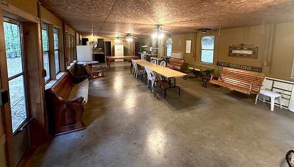 Welcome to this hidden gem referred to as the Travis Lodge on 14.7 +/- acres within city limits. Enter the property by crossing a bridge over a stream that opens up to a picturesque setting. This property is currently being used for family reunions and gatherings. This is the perfect place if you are looking for a multi use property. This property offers a 12x61 mobile home with a screened in porch. A little TLC and it would be livable. Also, a 20x50 building with a kitchen, bathrooms, and a gathering room. Imagine the possibilities! Being sold absolutely As-is. Appointment only! Do not enter property without an agent present. No title to mobile home.