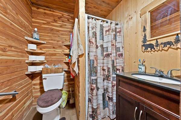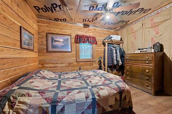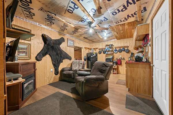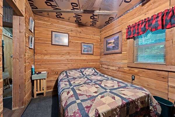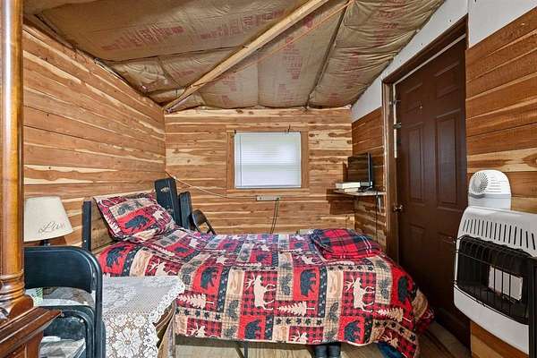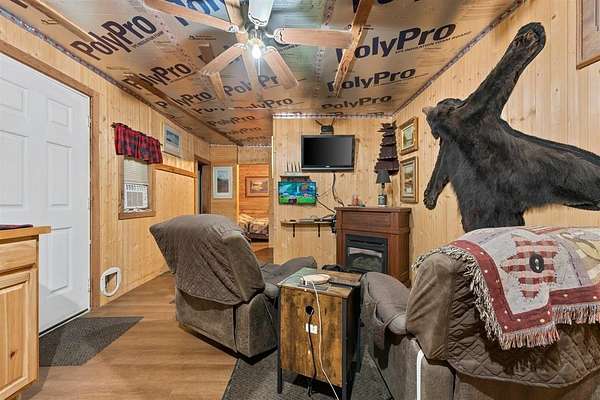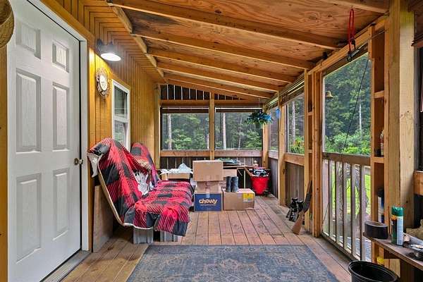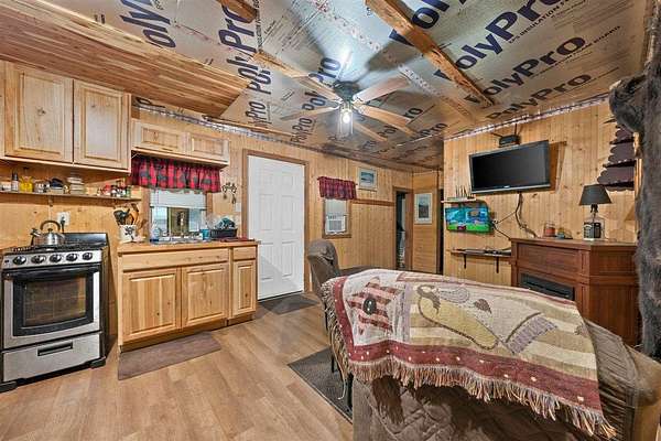 Escape the hustle and live self-sufficiently in this unique off-the-grid 2-bedroom, 1-bath retreat, fully powered by a 48-volt, 6000-wattsolar system that's cleverly connected to the carport rather than the home itself. Electricity is readily available. Tucked away in nature yet only 2 miles from a public boat launch, this property offers the best of both serenity and recreation. The home boasts industrial foam roofing for superior insulation and efficiency, while seamless gutters and downspouts provide clean, low-maintenance water control. Inside, you'll find a warm rustic aesthetic with tongue and groove knotty pine walls, walnut trim, and cedar accents, including hickory cabinets in the kitchen. Window air conditioning keeps things cool, and the spacious enclosed porch invites you to relax and enjoy the peaceful surroundings. Built for ease and accessibility, this home features no steps anywhere inside, anchored construction with cedar block risers, and insulated PEX water lines throughout. There's a crawl space for added utility, but no attic--everything is smartly designed for function and simplicity. The detached carport adds convenience, while fiber optic internet ensures modern connectivity. Outside, nature shines with a wet-weather creek, a spring-fed stream. Whether you're looking for a full-time residence or an off-grid getaway, this property delivers comfort, character, and independence--all wrapped in a charming, energy-efficient package. Also great for hunting whitetail deer and turkey.