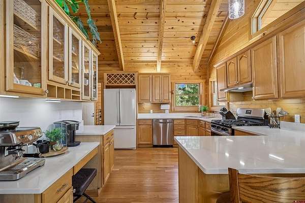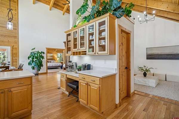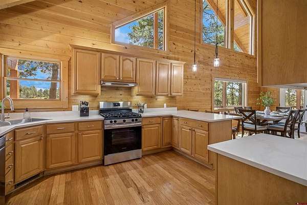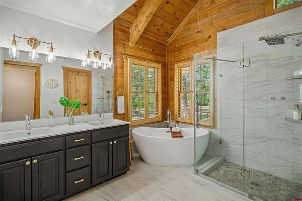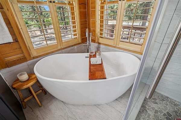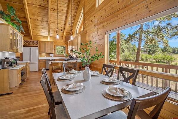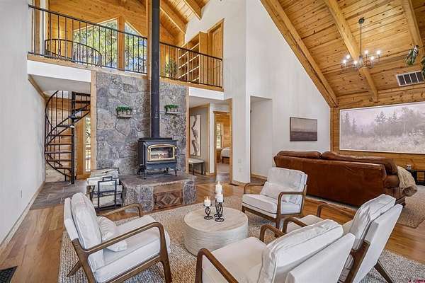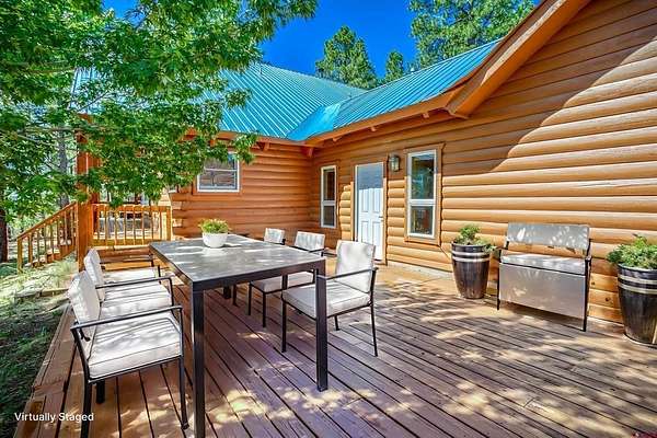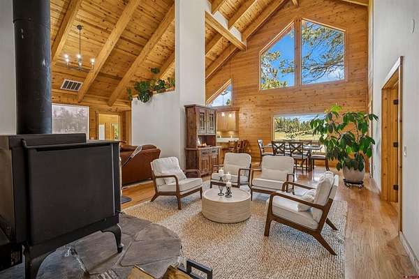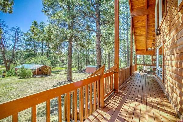 Kimberly Brown, Galles Properties, C: 970-749-3849, Kim@GallesProperties.com, www.crenmls.com: Storybook mountain living without sacrificing a thing! On 3.5 treed acres, this furnished, beautiful log cabin at 367 Oren Rd is in one of Pagosa Springs' most sought-after neighborhoods and locations! Centrally located to access everything in Uptown and Historic Downtown Pagosa Springs in under 5 minutes! Recently remodeled and upgraded, this property offers the perfect blend of authentic mountain charm and modern luxury. You'll love the privacy and mountain views, all without an HOA, plus the added convenience of year round maintained paved roads, and under five short minutes to everything in Pagosa. All easy main-floor living and a soaring cathedral ceiling with expansive windows that fill the space with natural light. The great room includes a freestanding wood-burning fireplace with a moss-rock stone hearth, a dining area, a projector screen media space, and an open kitchen. The kitchen is perfect for cooking, baking, and entertaining, complete with Quartz counters, a breakfast bar, a coffee station, and a pantry. Seamless indoor-outdoor living is enhanced by walk-out access to a serene lighted covered deck and sprawling open deck areas. The generous primary suite wing offers private walkout access to the covered deck, a freestanding gas fireplace, and a brand-new, spa-like bath with a soaking tub, walk-in closet, and double-sink vanity with a sleek modern Quartz countertop. A large mudroom/storage or flex space for bunk room or office is conveniently located just off the oversized garage/shop. This property is backed by green space with a pond and features all central utilities, including city water, sewer, natural gas, and electricity, along with strong cell and internet service. This home and property has extra storage throughout including two sheds to store cut wood, enjoy as workshop space or whatever your desired use is. Pagosa Springs was voted in the top 10 best mountain towns to live with no surprise-Pagosa's home to the worlds deepest hot springs, Wolf Creek Ski Area, 2.8 Million acres of National Forest abundant with big game and wildlife, free flowing fish rich rivers. The convenience of private air travel is just minutes away at Stevens Field. Don't let this opportunity be the one that got away, Schedule your private showing today.