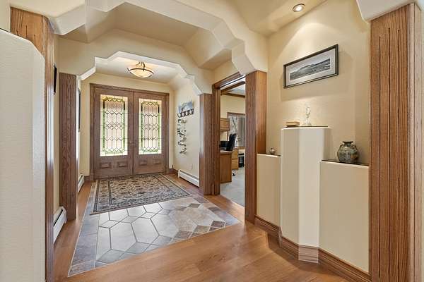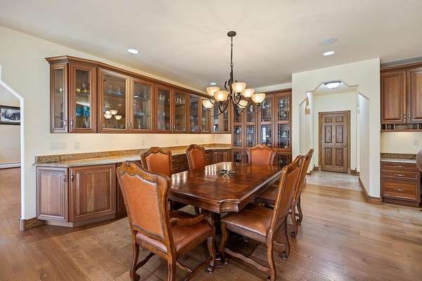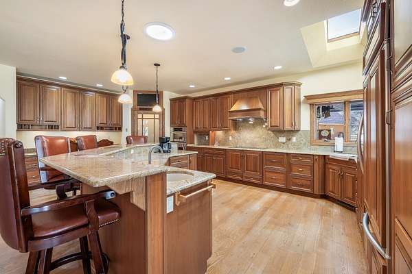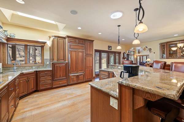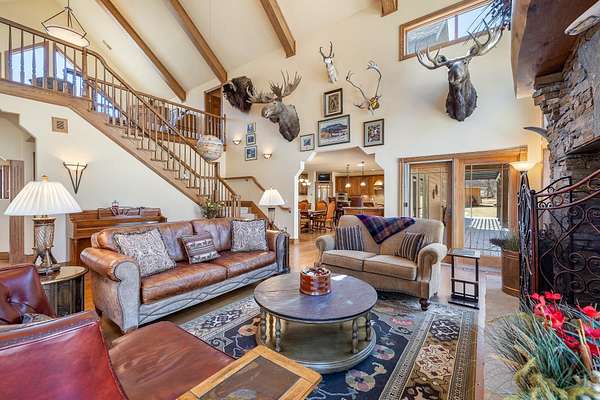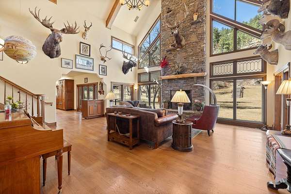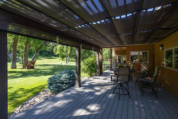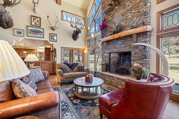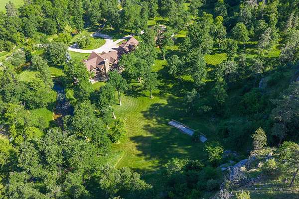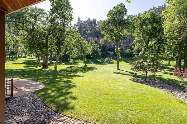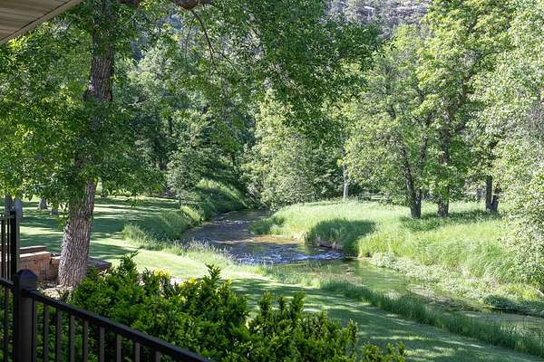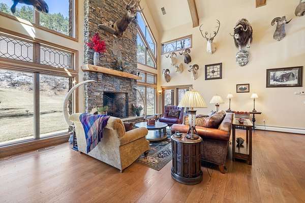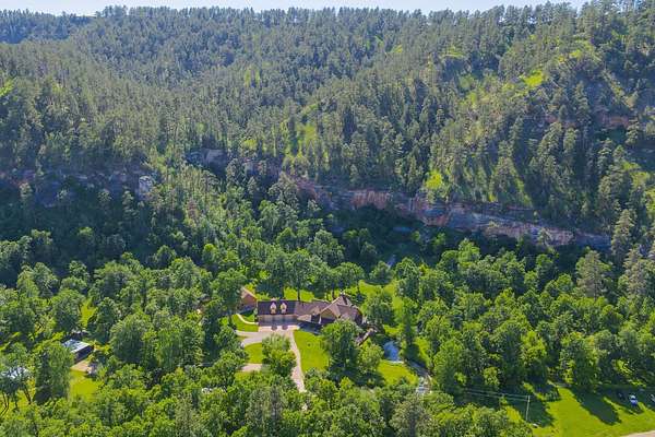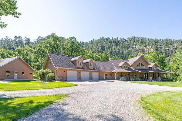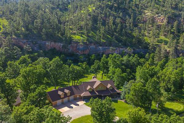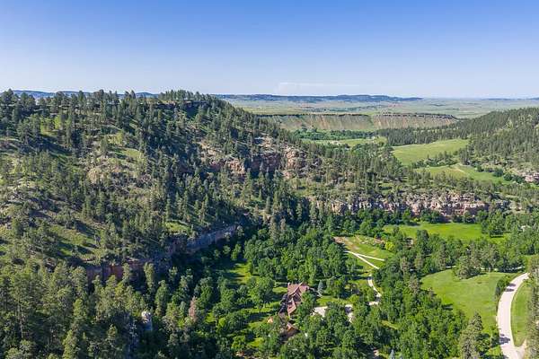 Offering a very quiet & secluded family retreat located in the Black Hills, south of Beulah, Wyoming along Sand Creek. This spectacular & private setting is surrounded with looming canyon walls & offers a clear water blue ribbon trout fishing stream out the back door of the custom stone home & separate recreation shop/garage. The entire Sand Creek Subdivision contains approximately 425 acres which includes the shared use areas. The property and buildings itself include approximately 5-acres. The 8,800 square foot home exhibits numerous custom features & is highlighted by an open cathedral living area with a floor-to-ceiling fireplace framed by windows. Main floor primary ensuite & gourmet kitchen make the home very comfortable and user friendly. The upper level opens to a library with two ensuites off each side, plus card room/game room & additional storage or sleeping areas. Open living areas in the basement compliment the home, plus an attached 5-car garage. The auxiliary structure allows for game processing, workspace, recreational vehicle storage & more. The beautiful creek & excellent fishing are highlights of the shared amenities, but there is also a sports court for basketball, tennis and pickle ball plus a shooting range for skeet, pistol and rifle enthusiasts. A unique corporate ownership structure helps maintain privacy & keeps the taxes low. The corporation has 25 shares, this offer includes one share. Don't miss this unique opportunity!