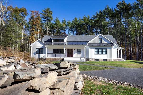 Accepted offer 12/12/25. Privately set on 10 scenic acres in the heart of Round Top, New York, this exceptional 3,000 sq ft residence offers the perfect balance of modern luxury and peaceful country living. A winding drive leads to a light-filled home designed for both comfort and entertaining, featuring a spacious open floor plan, soaring vaulted ceilings, and walls of windows that showcase the surrounding landscape and seasonal mountain views, sunrise to sunset. At the heart of the home is a chef's kitchen that will delight cooks and onlookers as well. Highlights include quartzite countertops, an 8-burner Wolf Range with pot filler, Sub-Zero Refrigerator, Miele Dishwasher, and a wet bar with Sub-Zero Wine Cooler and beverage fridge-an elegant space to gather. The thoughtfully designed layout offers a private primary suite on one wing of the home, complete with a luxurious ensuite bath featuring a soaking tub, separate shower, and generous closet space. And a separate entrance/exit for early morning jaunts in the woods. There is also mud room filled with custom built in storage lockers for all your visitors. On the opposite wing, two additional bedrooms each enjoy their own ensuite baths, providing a perfect balance of comfort and privacy. Outdoor living is equally inviting. A charming front porch welcomes you home, while a spacious back deck provides an ideal setting for dining, entertaining, or simply soaking in the natural beauty that surrounds you. A path leads to the fire pit area, a perfect spot for evenings under the stars, and meandering walking trails extend into the woods, creating your own private retreat in nature. Adding to the appeal is a detached garage with a private apartment above-ideal for hosting or an income opportunity. An additional barn offers exceptional versatility, featuring front and back garage doors for easy drive-through access-perfect for vehicle storage, a workshop, or studio space. This rare offering combines refined interiors, exceptional amenities, and a serene setting just minutes from all the beauty and recreation the Catskills have to offer. A true retreat that balances comfort, elegance, and connection to the land.