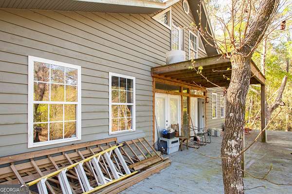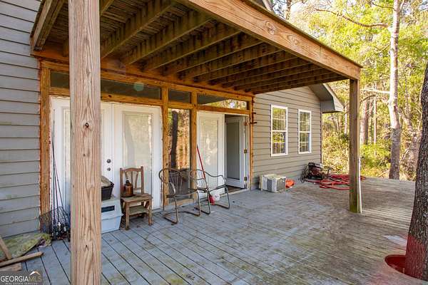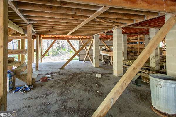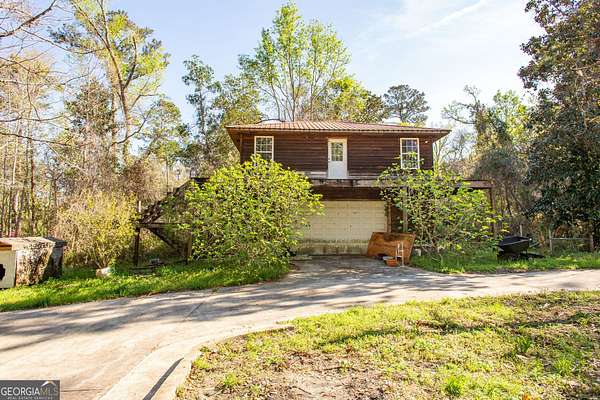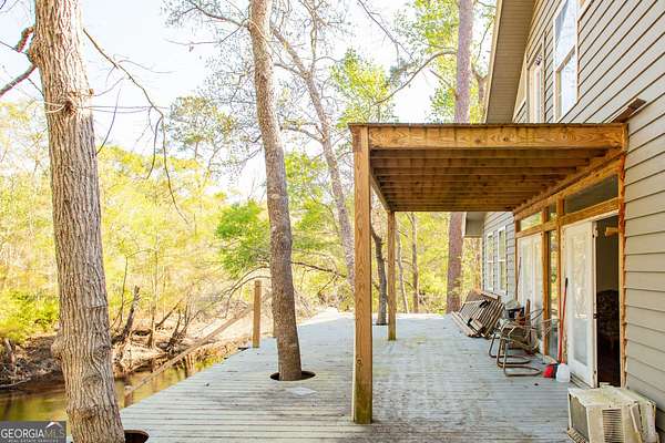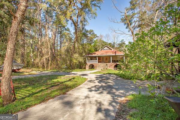 Situated on 2.64 acres along a beautiful stretch of the Satilla River, this home offers stunning views and a peaceful setting that's hard to replicate. With a wrap-around porch, multiple back decks, and room to roam, this is the perfect place to enjoy the outdoors and take in everything riverfront living has to offer. The home features 3 bedrooms and 2 bathrooms, with a 1.5 story layout that includes a private upstairs master suite. Inside, you'll find a full kitchen, two separate living areas, dining room, and a laundry room. Built on a concrete foundation with concrete pillars and spray foam insulation underneath, in the walls, and under the roof, the home has a solid structural base to withstand the elements. A standout feature is the detached 2 car garage with a room above, ideal for future guest quarters, rental potential, or a private studio/workspace. This home is full of potential and ready for your personal touch. With a little vision and some TLC, it could truly shine as a full time residence, weekend getaway, or investment opportunity. If you've been waiting for a chance to own riverfront property and aren't afraid to put in a little work, this could be the one. Being sold as-is.