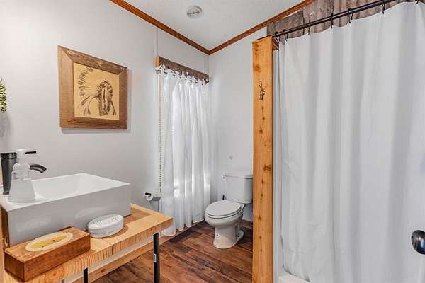 A truly unique property with endless possibilities whether you are looking to build your dream home or looking for the perfect weekend getaway to enjoy the peace and quiet of the country! Located just one hour East of the Metroplex with quick Hwy access for an easy commute! Also situated just one mile South of the Lake Tawakoni State Park which features a 4-lane public boat ramp, 376 acres of oak forest, five miles of lakeshore, hiking trails, swimming, fishing, and so much more! The lake itself spans over 37,000 acres and is known for its recreation as well as its stock of catfish, crappie, and bass! The property boasts 20 Acres with beautiful mature trees, gated entrance, gravel drive, and a large pond approximately 1 acre in size! Water, electric, aerobic septic, and internet in place! There is a mobile home on-site that will convey! The home is used as community bathrooms, office, lobby, and make ready areas for the business currently being operated on-site. There is a floorplan sketch available in the transaction folder. There are a total of 3.1 baths with exterior access. Inside you will find 2 bedrooms, 1 full bath, laundry, living, kitchen, and breakfast area. Property sits adjacent to a large area of SRA leaseback of which the current owner leases a large portion including waterfront access to the lake cove on the West side of CR 3829 fed by Caney Creek as shown in the aerial photos! There is no direct access to open water via a boat, but you can take a kayak through the culvert! There is tons of wildlife in the area and excellent fishing in both the large cove as well as the pond on the deeded acreage! Enjoy hunting, fishing, and hiking trails of your very own while also having access to all that the State Park offers just minutes away! Bring your fishing pole, your binoculars, and your hiking shoes! Imagine yourself with a place like this to call home! Must have an appointment and agent present to view the property due to current business on-site!