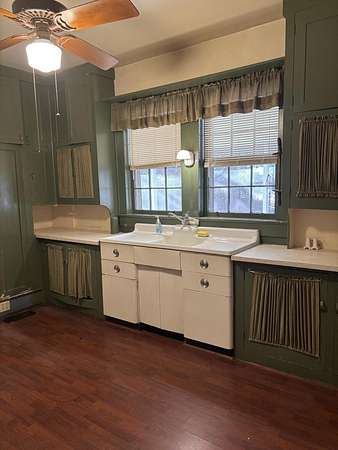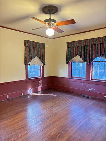 This beautiful home has 4 bedrooms, 2 baths, kitchen, dining room, family room and keeping room. The family room has a large gas log fireplace and the keeping room has a wood stove along with central heat and air in the downstairs areas. Hardwood flooring throughout and two additional rooms to use as office space or craft area. The primary room is on the first floor while the other 3 bedrooms are upstairs and able to shut off from the down stairs. The front porch stretches across the front of the home and the rear porch across the back and is covered. Mature trees and shrubbier surround the home. Detached older garage in back and a small shed sitting on 2.6 acres. It is in need of a little TLC. Move in now and add your personal touches. Being sold AS IS.