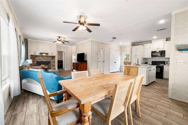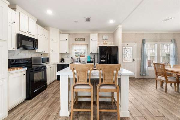 A second residence, a 2022 custom manufactured home, includes 2 bedrooms and 1.5 bathrooms with a handicap-accessible ramp/sun deck. The open floor plan offers a full kitchen with island, living and dining areas, fireplace, tile walk-in shower, and large walk-in closets--perfect for guests, extended family, or rental potential.