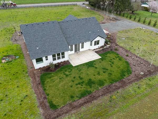 Tucked just minutes from town in a highly sought-after location, this like-new single-level home offers the perfect blend of convenience, privacy, and wide-open space. Set on a level 1.81-acre lot, the home is thoughtfully positioned toward the back of the property, creating exceptional territorial views from both the front and back and giving you all the elbow room you've been dreaming of. Step inside to an inviting open-concept layout featuring 4 bedrooms, 2.5 baths, and a spacious dedicated office-ideal for today's work-from-home lifestyle. The stunning primary suite is a true retreat, complete with a tile shower and separate freestanding soaking tub. Outdoors, enjoy landscaped surroundings with sprinklers around the home while still having ample room for a shop, barn, animals, or future expansion. Start your mornings on the large back patio watching the sun rise, and unwind in the evenings with beautiful sunsets from the front of the home-your own slice of peaceful rural living.