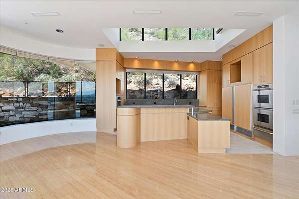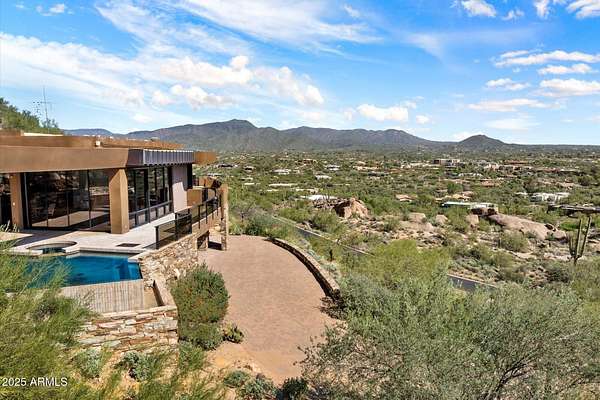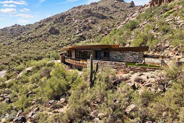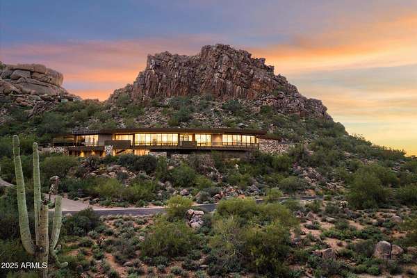 A striking architectural feat set into Black Mountain's eastern face, this bespoke estate rests on 2.7 acres of untouched desert terrain. Its graceful crescent form hugs the slope, embracing panoramic views of Scottsdale, Carefree, and the Sonoran horizon. Engineered with commercial-grade steel and natural masonry fused into the granite bedrock, it sits in perfect harmony with the surrounding boulders. Exterior finishes - patinated copper, hand-cut stone, and earth-toned stucco anchor it to the landscape. Refined interior appointments and masterful craftsmanship elevate every space, creating an atmosphere of timeless desert elegance. Years in development, and impossible to recreate - one could not replicate this home today for the offering price. Your inquiry and tour is warmly welcomed.