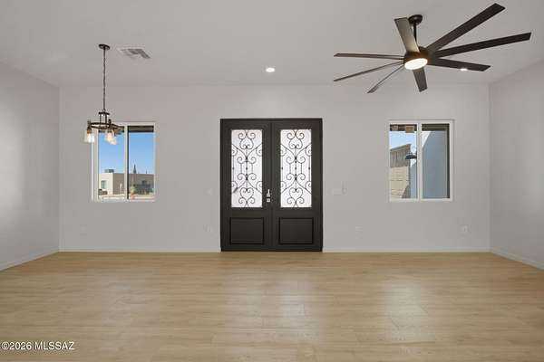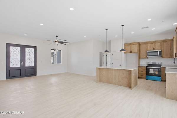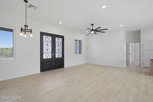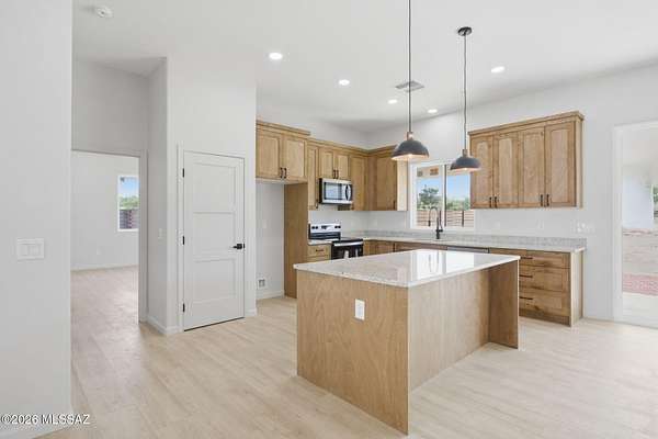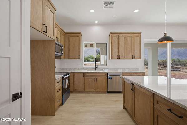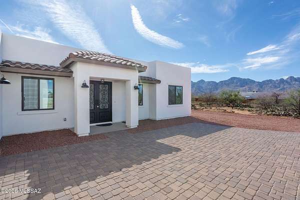 Set on 1.62 acres in sought-after Catalina, this newly built home offers breathtaking mountain views from every angle. Designed with 10' ceilings and an open-concept layout, the space flows seamlessly to a covered patio through a stunning 3-panel glass door--perfect for soaking in Arizona sunsets. Featuring 3 bedrooms, 3 baths including a Jr. suite, modern yet timeless finishes, an RV/work garage, and pavered entry with a striking metal front door. Horse-friendly with direct access to scenic desert trails. Just minutes from shopping, dining, and Oro Valley amenities. A lifestyle of space, freedom, and quiet beauty--waiting to be experienced.