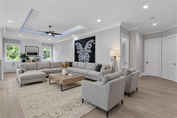 Experience luxury living in this nearly new custom-built estate located in the prestigious Buford with BUFORD City School District. Situated on over two acres with NO HOA, this residence offers 6 spacious bedrooms including a private suite on the main level and a full Finished BASEMENT, 6 full baths plus 2 half baths, an upstairs loft, and an enclosed patio perfect for entertaining. The chef's kitchen features quartz waterfall counters, a an elegant backsplash, professional-grade appliances, and modern designer lighting, flowing seamlessly into an open-concept living room with soaring ceilings, floor-to-ceiling windows, and a striking fireplace feature wall. at the main level you'll find a covered Deck space ideal for outdoor dining and entertaiment, with a fenced backyard offering privacy and ample room for recreation and a great space to build your own Pool! The primary suite impresses with a spa-inspired bathroom showcasing three walk-in showers, a freestanding tub, and an oversized custom closet with abundant shelving and center island. Additional highlights include expansive secondary bedrooms, custom lighting with tray ceilings, wide plank flooring, multiple oversized walk-in closets, and a large laundry suite with extensive cabinetry. Modern Features and upgrades include: Electrical Blinds all over the house, Water purification system filter. The FULL FINISHED BASEMENT is an Entertaiment retreat, featuring a bar/kitchenette area, full bathroom, a huge bedroom and plenty of space for storage. With over 6,458 Square feet plus 2000 square feet in the Basement. Perfectly located just minutes from Hamilton Mill Country Club, Lake Lanier, the Mall of Georgia, and top-rated Buford schools ranked #1 in Georgia, while offering quick access to I-85 for commuting to Atlanta. With fine dining, luxury shopping, premier golf, resort-style amenities, and the advantage of NO HOA, this estate is more than a home, it's a lifestyle.