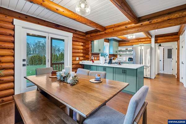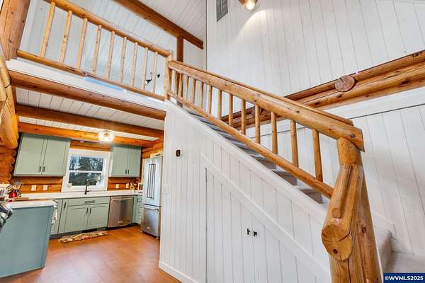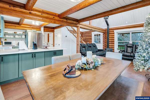 Est $3,717/moWelcome to this beautifully updated log-style home on 1.5 acres, offering the perfect blend of charm, comfort, and modern living. Tall vaulted ceilings, large windows, and exposed beams create a bright, open atmosphere throughout. Enjoy custom cabinetry, quartz countertops, stainless steel appliances, and fully refreshed bathrooms. With warm natural wood finishes, this home delivers both character and convenience--just minutes from town.