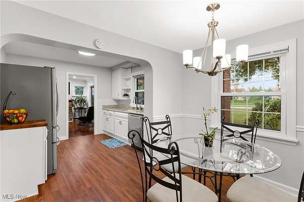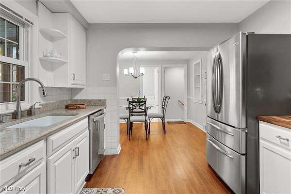 Experience the perfect blend of classic charm and modern convenience in this beautifully remodeled home. Every aspect has been thoughtfully updated, including the kitchen, bathrooms, flooring, lighting, and fresh paint throughout, creating a stylish, comfortable, and inviting atmosphere. Step into the light-filled sunporch at the front entry, featuring three walls of windows that welcome you inside. The cozy Living Room boasts a gas fireplace, recessed accent lighting, fresh paint, and a wide-screen TV mounted above the fireplace-making it an ideal space to relax and unwind. The galley style updated Kitchen features ss appliances, hard surface (cultured granite) and butcher block countertops, white cabinetry, and ample storage. Entertaining your family and friends is effortless with the adjoining Dining Room and discreet Half Lav. The first floor offers three Bedrooms and a Full Bathroom with a tub/shower combination. Off the back hallway, you'll find access to the attached one-car Garage and a full, unfinished lower Level with storage, mechanicals and washer/dryer. Outside, enjoy a generous backyard on a 2.48-acre lot (100 x 1083 ft)-perfect for entertaining or relaxing by the built-in firepit under the stars. The thoughtfully landscaped grounds are ideal for gardening, play, and relaxation, while the inviting patio is perfect for weekend barbecues or morning coffee. Additional features include a 5-6 car garage for car enthusiasts, hobbies, or a workshop, as well as a large storage shed for versatile use. With numerous updates completed, and being located in Solon, a top-rated school district, convenient shopping and restaurants, this move-in-ready home is prepared for its next chapter with you!