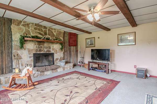 Discover the potential in this generously sized 5 bed, 2.5 bath home set in a peaceful country setting. With plenty of room to spread out, this property features a formal dining room, a large living room, and a separate family room with a cozy wood-burning fireplace - perfect for cozy gatherings. The main floor includes a spacious primary bedroom, while upstairs you'll find four additional bedrooms and two full baths. Step outside onto the deck and enjoy views of the expansive backyard dotted with mature trees-ideal for relaxing, gardening, or play. Additional features include a carport, storage shed and Heatmor outdoor furnace. Come see the possibilities and create your dream retreat in a quiet, rural setting.