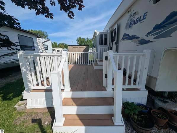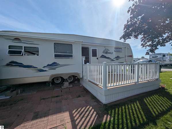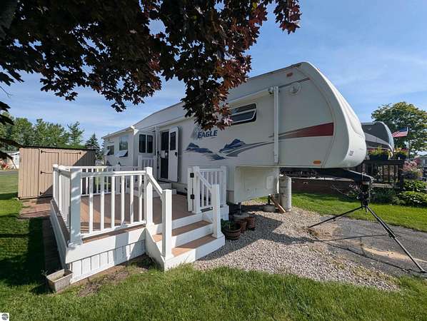 Est $365/moAn opportunity to get into the Northport Condominium Campground and all of it's amenities including a beach area along the water! This lot offers a 2007 38' Jayco Eagle RV with a great composite deck for outside enjoyment, and a storage shed! The RV offers multiple slide-outs, one bedroom, one bath, kitchen/living area, city water/sewer, l/p gas, & central air. Located in a nice area of the complex as it backs up to the large common area of the clubhouse that offers a pavilion, laundry facilities, restrooms/showers, and a beautiful in-ground pool area! access to a beach area just a short distance away from the site. Offering Immediate Occupancy!