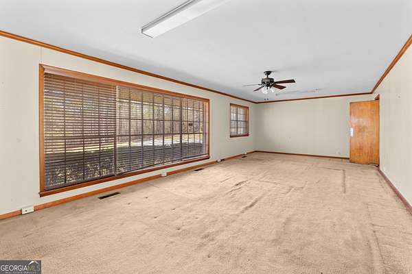 Cool 60's style home full of character and ready for its next chapter. If you love mid-century design, this one has all the right bones to be something really special. The long, low profile, large windows, and classic brick exterior give it that timeless look you just don't find anymore. The structure, the lines, and the curb appeal are all there just waiting for someone with vision to bring it back to life and turn it into a true showstopper. This 3-bedroom, 2 bath home features an enormous family room, a spacious living room, and bedrooms that are all generously sized. Sitting on 6 private acres just outside the city limits, you get the best of both worlds; peaceful, quiet living with convenience just minutes from Carrollton, Newnan, and LaGrange. The property also includes three outbuildings, perfect for workshops, storage, or whatever you need. Whether you're looking for a personal project or an investment opportunity, this one is full of potential. Home will only go CASH.