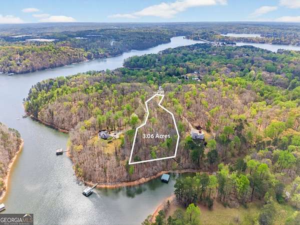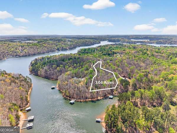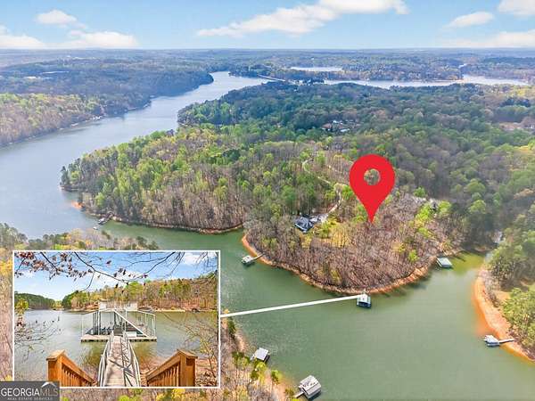 Opportunities like this on Lake Lanier do not come around often. This 3.06 acre +/- wooded lot sits in a private cul-de-sac with approximately 280' +/- of lake frontage, deep water access, and a permitted two story twin slip party dock that is 32x32 with a dock permit in place through December 2029. Perfect for a buyer looking to build or a builder looking for an opportunity. The lot features a natural level area perfectly positioned overlooking the lake, giving you a ready made home site with the kind of views that sell custom builds before the foundation is even poured. Beautiful lake views, a tranquil setting, and mature hardwoods throughout the property create a backdrop that is genuinely difficult to replicate anywhere on the lake. City water and all utilities are available. A survey and soil test have been completed, and the shoreline is partially rip rapped. Zoning is AR-1 and the lot is positioned in one of the more desirable pockets of North Hall. Only a few minutes to Clarks Bridge and the Olympic Park. Access to 985 and Gainesville is less than 10 minutes away. True lake privacy without sacrificing convenience. This is a premier building opportunity with the infrastructure, frontage, and dock already in place. Lot lines in photos are approximate. Bring your building plans and schedule your showing now!