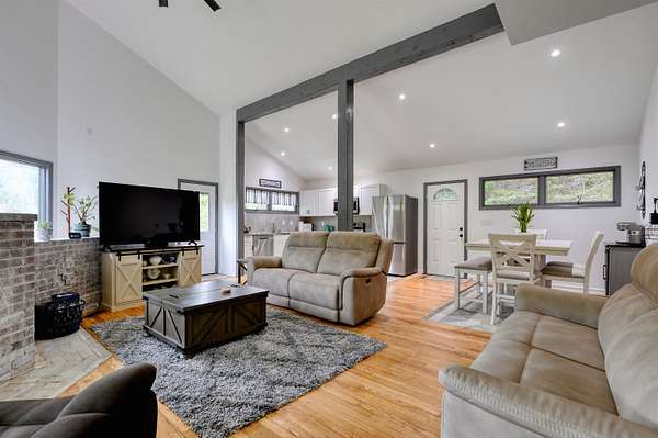 Bring your horses and come on out to this gorgeous one of a kind four bedroom, three full bath home situated on over 2.4 acres including fenced pasture that is located just outside the Town of Blacksburg limits and approximately 10 minutes from Virginia Tech. Enjoy the view of your pasture from the large deck, room to entertain in the great room with vaulted ceilings and passive solar heat and an abundance of windows that showers the room with natural light. Bright and airy kitchen with granite countertops and two bedrooms on main level. Primary bedroom with private Primary full Bathroom upstairs along with a loft area overlooking the living room. A bonus guest suite in the walk-out basement with LVP floors as well as extra storage including a garage area for the lawn equipment or use as a workshop. A treasured home awaits new memories.