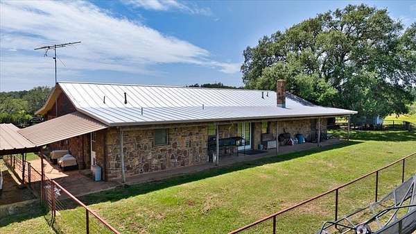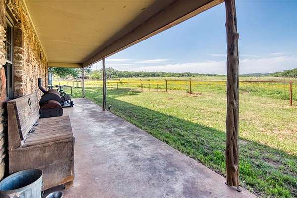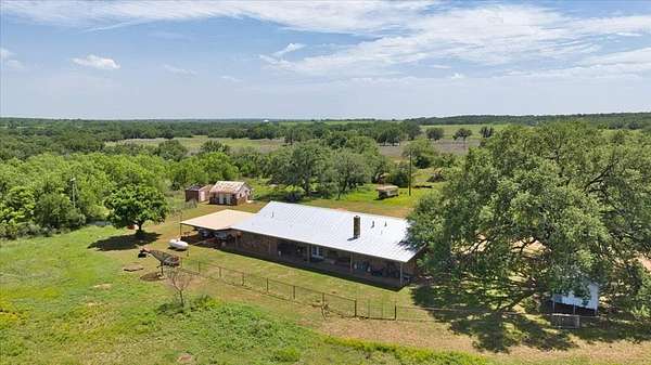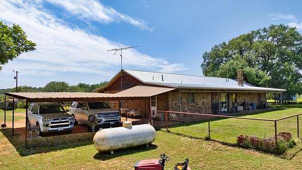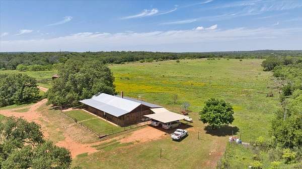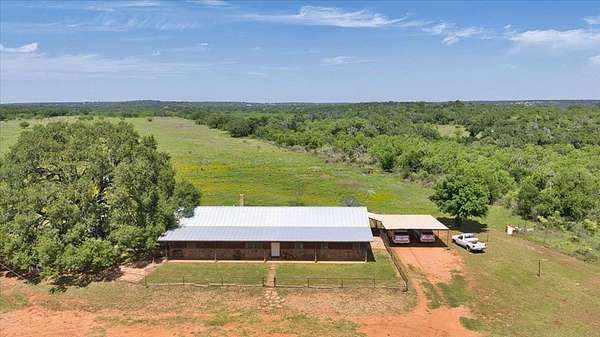 Red Lane Ranch is an excellent opportunity for cattle grazing, recreational hunting, and country living in a desirable Hill Country location. The property is well-watered with four water wells drawing from the Hickory Underground Water Aquifer. Two of the wells were formerly used for irrigation. The strongest irrigation well was drilled in 1972, tested in 1987, and produced 800 gallons per minute at a depth of 648 feet, according to the recorded well log. The second irrigation well is approximately 400 feet deep, though no pump test is on record. The ranch offers easy access with frontage on Red Lane County Road, located just south of Highway 29. Improvements include a well-maintained ranch home built in 1991, offering 2,277 square feet of living space per Mason County Appraisal District. The home features three bedrooms, two bathrooms, a rocked fireplace with insert, and covered front and back porches. Recent updates include "a standing-seam metal roof and central heating and air conditioning system", both installed in 2024.. Additional improvements include an older lumber barn and two sets of corrals suitable for livestock operations. The land is gently rolling with several elevated areas, providing scenic views and good drainage. Soils are primarily deep sandy loam with areas of shallow limestone on the higher hills. Vegetation is dense and diverse, consisting of post oaks, live oaks, mesquite, cedar, white brush (bee brush), and wild persimmon, offering excellent wildlife habitat. A wet-weather creek meanders through the ranch, and a small pond maintained by a well provides additional water. Agricultural features include an approximately 55-acre former peanut field, now grown up with mesquite and a strong stand of Wilman Love Grass, as well as an approximately 26-acre field planted in coastal bermudagrass near the ranch headquarters. Wildlife is abundant, with healthy populations of whitetail deer, turkey, and feral hogs, making the ranch ideal for recreational hunting. All fencing is low fence (non-high-game), and the property is surrounded by large neighboring ranches, enhancing privacy and wildlife movement.