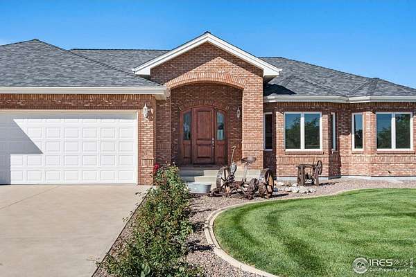 Peace and quite, country living in this custom-built, all-brick ranch home is perfectly positioned on over 30 acres of agricultural-zoned land, offering panoramic mountain views, peaceful sunsets, and the kind of space and privacy you simply can't find in town. Inside, you'll find a spacious and inviting open-concept floor plan centered around a chef's kitchen featuring custom Select Alder cabinetry, a 6-burner gas cooktop with a built-in grill, a trivection oven, and a stunning granite backsplash that reflects the mountain landscape views outside. The layout was made for entertaining, and everyday comfort alike.The primary suite is a relaxing escape with dual walk-in closets, a luxurious spa shower, and separation from the guest bedrooms for privacy. There's also a bright and functional home office complete with a charming bay window and built-in seating, ideal for remote work or a quiet reading nook.Outdoors, the possibilities are endless. You'll love the professionally landscaped yard, complete with a 40' flagpole surrounded by blooming perennials. A fully insulated, 1,276 sq ft shop provides the perfect space for projects, storage, or hobbies. RV owners will appreciate the full hookup station, and there's also a loafing shed for animals or additional storage. Wildlife lovers and outdoor enthusiasts will enjoy the opportunity to hunt geese and doves right on the land.A two-year-old roof, new windows, and a custom walk-in storm shelter in the basement complete with a Fort Knox Vault Door round out this extraordinary rural property, located in the desirable Eaton School District. A brand-new septic tank and leach field have just been completed, engineered to accommodate a 5-bedroom home if the buyer chooses to finish the basement. The system is gravity-fed, and a French drain encircles the home for added drainage and long-term protection.