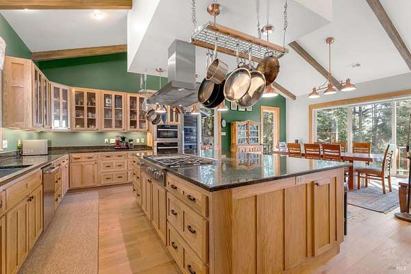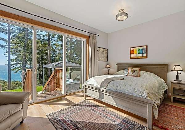 Exceptional 4-acre private estate offered for sale for the first time. The home, garage, studio, greenhouse and outdoor grilling kitchen was built between 2022-2024. Tucked away for privacy yet just minutes from downtown Gualala,the home enjoys ocean views over Cooks Beach. Inside,an open-concept layout connects the kitchen,dining and living areas. The chef's kitchen features Miele stainless appliances, including a steam oven and wine refrigerator and an oversized island ideal for gatherings. Expansive west-facing windows and glass doors fill the home with natural light and ocean views. The first floor also offers 2-bedrooms,1.5 bathrooms,laundry and pantry. Upstairs,a primary suite with bath and office. Oak doors, trim and beautiful wood flooring highlight expert craftsmanship. There is a solar array with battery backup for energy efficiency. Adjacent to the main house,a detached studio provides flexible space for art,fitness or work. Next to it,the greenhouse constructed of stone,glass & concrete invites year-round gardening. Outdoors,a custom grilling kitchen features granite countertops,stacked-stone walls, and a grill with copper hood imported from Argentina-perfect for coastal gatherings under the open sky. Come experience Coastal Mendocino living at its finest.