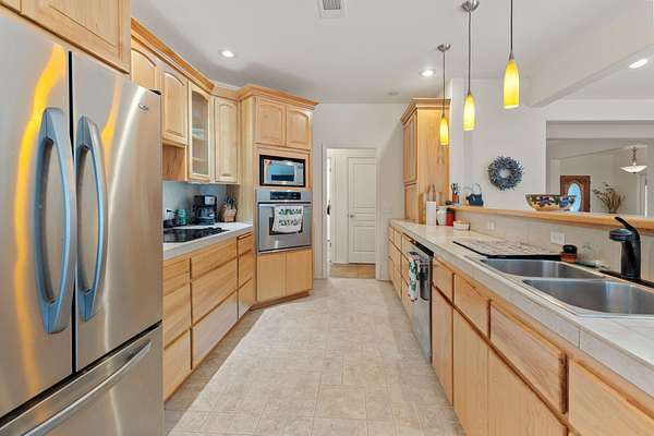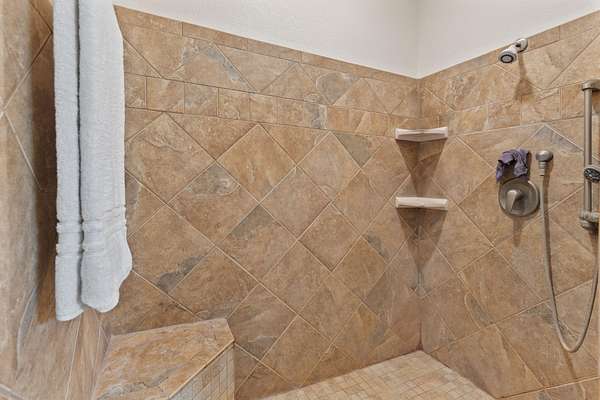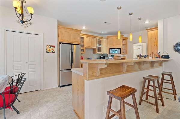 - Breakfast Bar, Ceiling Fan(s), Linen Closet, Pantry, Primary Downstairs, Shower/Tub Combo, Tile Counters, Walk-In Closet(s)
