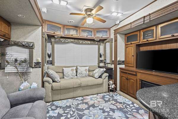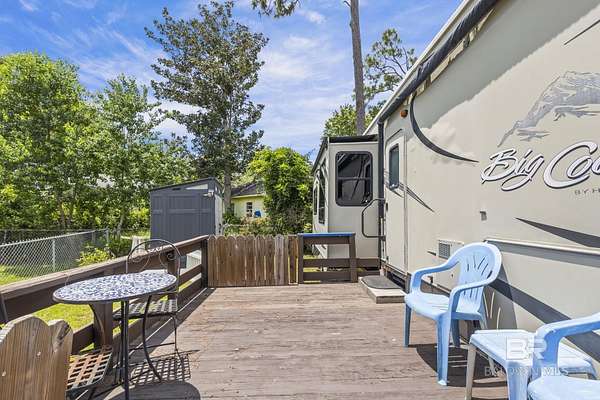 Improved RV Lot with 2012 Heartland Big Country Gold Edition 5th Wheel.(At no value) Welcome to your perfect getaway in the vibrant golf cart community, Spanish Cove! This 39.1' x 81.7' improved lot features a raised patio right off the front door. Partially fenced for your furry famiy members,2 new AC units,new washer and dryer, all tinted windows, 2 propane tanks,house size frig with icemaker,king size bed, sofa sleeper, reg. size toilet,large closet in bedroom,also comes with an electric mower and so much more!! You'll have exclusive access to a variety of community amenities. This 24 hour secured property is close to beaches, shopping, public boat ramps, and piers.COMMUNITY Enjoy the outdoor pool which is covered and heated during the cooler months, making for perfect year-round enjoyment.You'll have tennis and pickleball courts, 2 clubhouses, fishing pier, fitness center, and laundry facilities. Daily social activities include: music, bingo, dancing, computer training, day trips, and more. NATURE Just 7.2 miles from the stunning Gulf of America, perfect for beach day sand water activities.Close to the Pensacola Naval Base, home of the Blue Angels, offering unique opportunities to witness breathtaking aerial performances.This RV lot is ideal for those looking to enjoy a blend of outdoor adventures and community life. Don'tmiss out on the chance to make this your forever home away from home! Buyer to verify all information during due diligence.