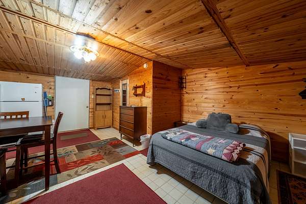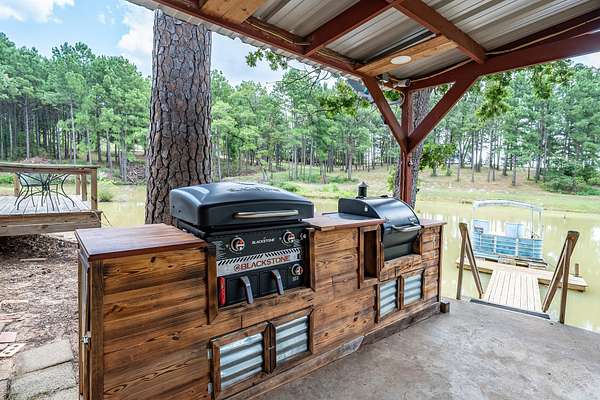 Wonderful Stay-Cation family compound or income producing AirBnb on 12.54 scenic acres with FOUR cabins, huge shop, overlooking large pond in Jacksonville, Tx. Ready-to-go with most furnishings to convey, with mini-splits and/or window AC, fishing, ATV trails, gun range, deer feeders, possible zipline, and outdoor kitchen and grills overlooking the pond with concrete spillway. All cabins are 1 BR, 1 Bath. (602 SF, 448 SF, 504 SF, & 364 SF). Two entrances to property with main entry having rustic cabin with covered back deck overlooking the pond and cabins by the pond as well as 30x50 shop with apt and washer/dryer. Shop with concrete floor, insulated, with electric and equipment is available for optional purchase for interested buyers. Second entry is closest to highway and before creek and goes down a scenic path to the two cabins by pond with covered deck and outdoor kitchen and grills. ATV trails run throughout property, on both sides of pond. Call today before this rustic retreat is gone!