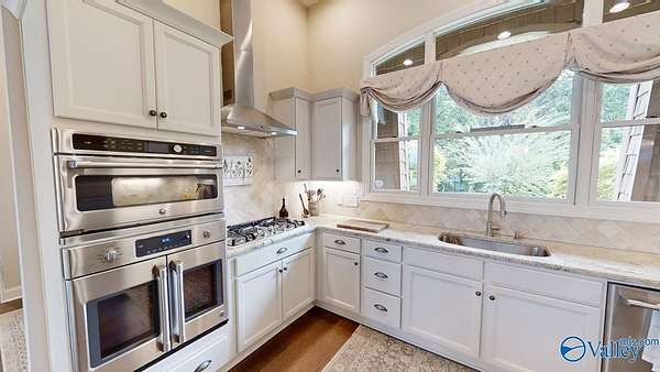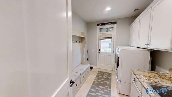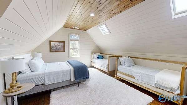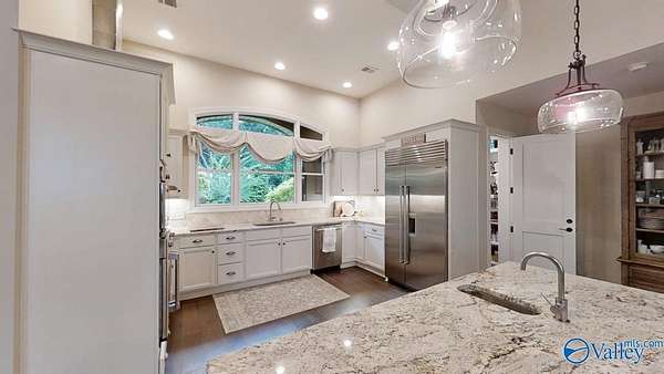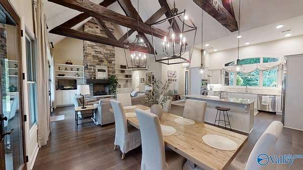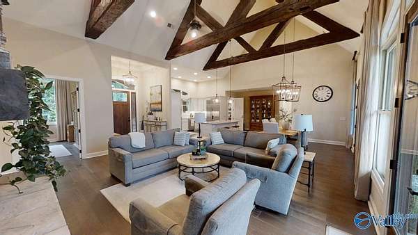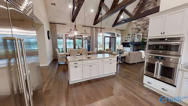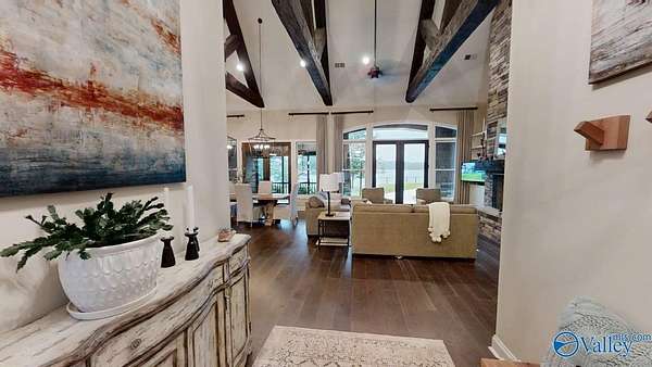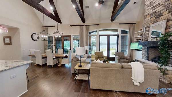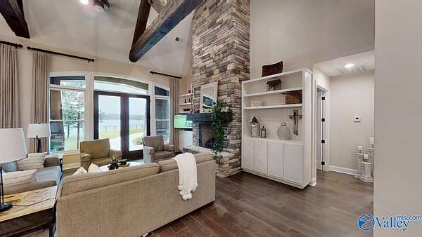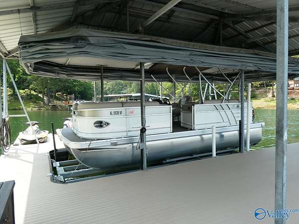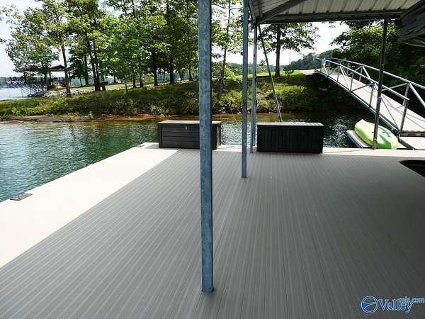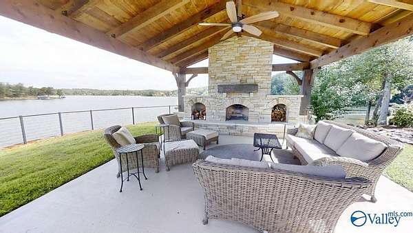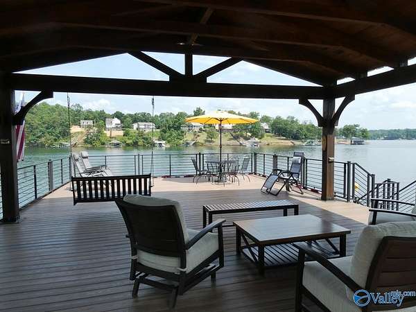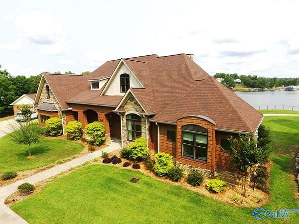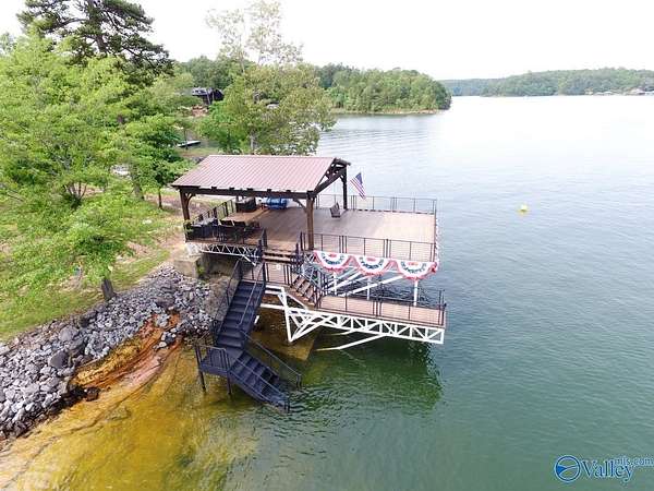 THIS IS IT!! The ONLY property like it on Lewis Smith Lake A 2.42 ac Estate size point Lot on the mouth of Dismal Creek. Featuring 969 ft. of shoreline, a rocky deep water area for the boat dock, private concrete boat launch, a Party size deck hanging over the water off the point. For children & pets a walk in area w/a sandy beach. This amazing 3200 sq. ft home is 1 level w/an open floor plan. YOU will enjoy the soaring stone fireplace in the Grtrm, a chef kit w/SS appliances & granite counters. 5 BR & 3 Full BA. There is a spacious outdoor entertainment area with a massive stone fireplace on Lake side. 2 car attached garage & a single car/workshop. This sits behind a private security gate