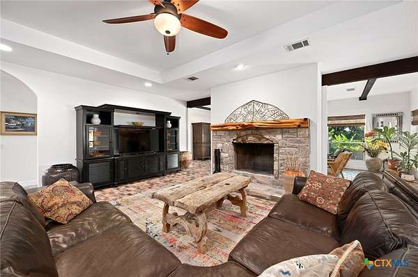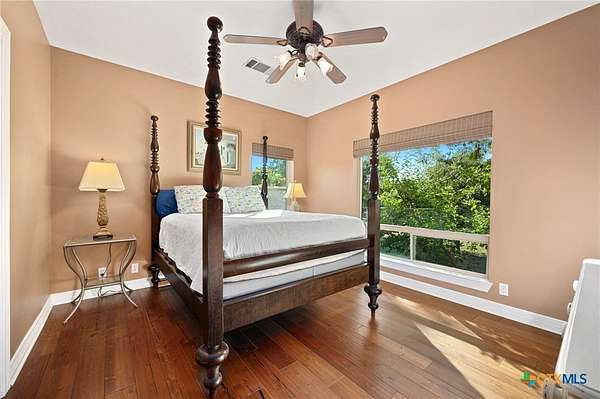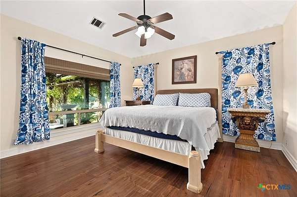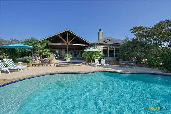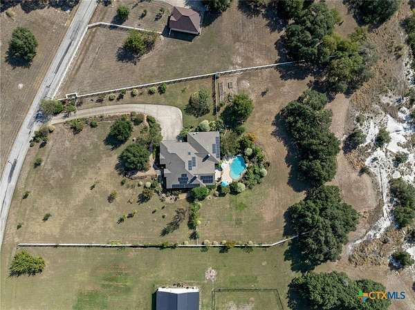 If you want beautiful country living and convenient to the surrounding cities, this is IT!!!. Single story home with nice brick tile flooring and wood flooring throughout. The over 3 acre yard is landscaped with trees and native plants. Every season there is something happening or blooming with Iris, Banana Trees, Peach Trees, Pride of Barbados, Poppies, many seeded flowers and other nice plantings. The flowerbeds have automatic sprinklers and there is a sparkling pool with water fall for your summer and fall enjoyment. Amazing views from nearly every room in the home of the yard, pool and trees. This single story home has 3 bedrooms/2 full baths with jetted tub in main and soaking tub in guest plus separate showers. The primary bedroom has a spacious sitting room with gas log fireplace for cozy winter evenings. The main kitchen is a dream with dual built in ovens, propane Jennaire cook top with griddle, microwave, dishwasher and the best nugget ice maker. Granite counters and an island for amazing entertaining. Wet bar with Mexican tile open to breakfast room and spacious living room. There is a large wood burning fireplace with pretty cedar mantle. A sunroom of main living with floor to ceiling book shelves and walls of windows. The best part is the huge covered patio overlooking large pool area and views of beautiful oaks. At rear of property there is a nice creek view, access the creek that belongs to Heritage SG HOA across the hill. You can also walk across the street to the HOA park area and walk along the San Gabriel River. Did I mention Solar Panels owned? You will be amazed at very little to no electric bill in certain months saving hundreds. Easy access to SH 130, Hutto, Georgetown, Round Rock and Austin. The location is amazing. Come on out to your very own piece of Texas!