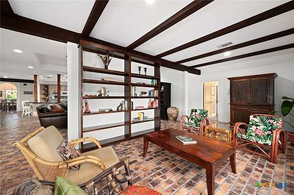 - Attic, Beamed Ceilings, Bookcases, Breakfast Bar, Ceiling Fans, Dining Area, Double Vanity, Granite Counters, Jetted Tub, Kitchen Dining Combo, Kitchen Family Room Combo, Kitchen Island, Open Floorplan, Pull Down Attic Stairs, Recessed Lighting, Separate Formal Dining Room, Separate Shower, Smart Thermostat, Walk In Closets, Wet Bar, Window Treatments