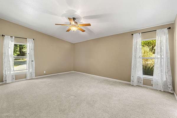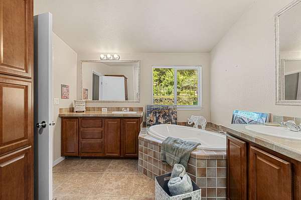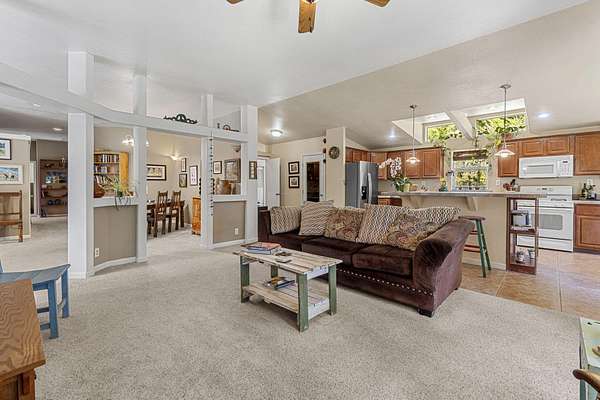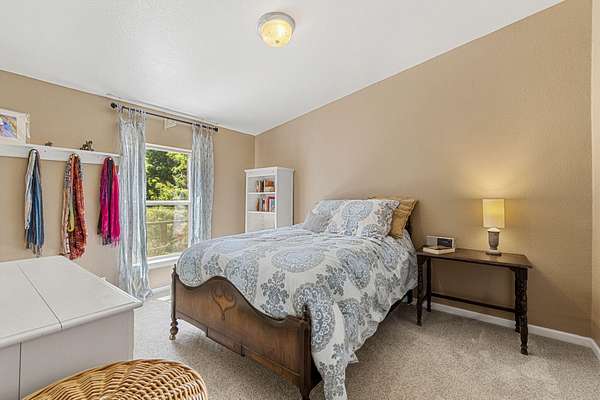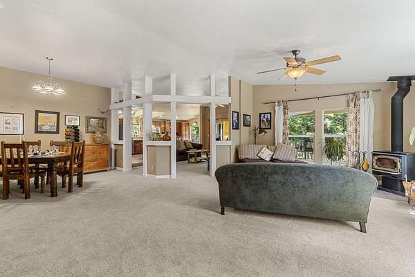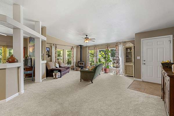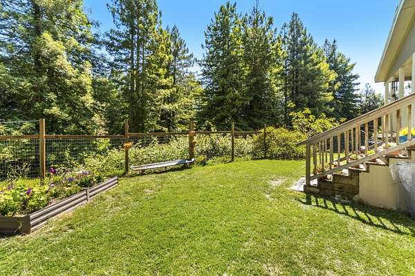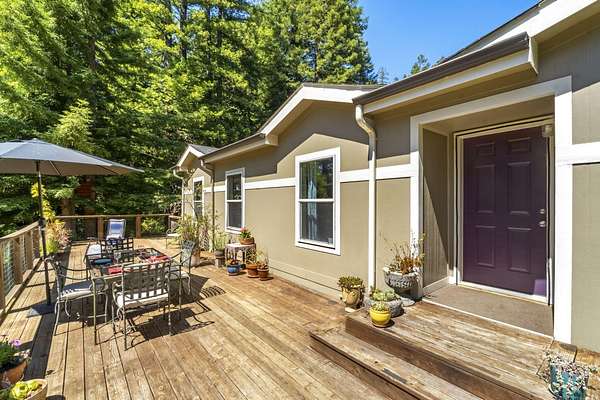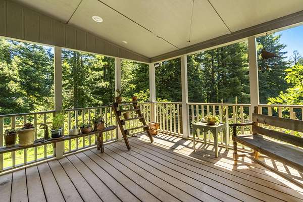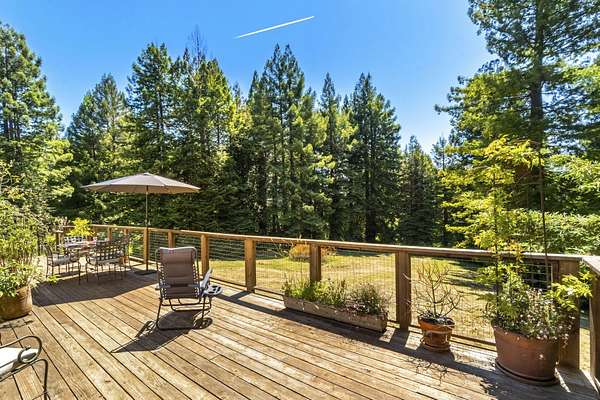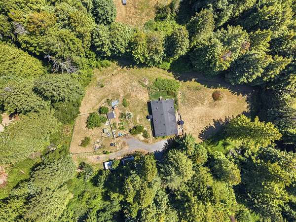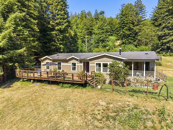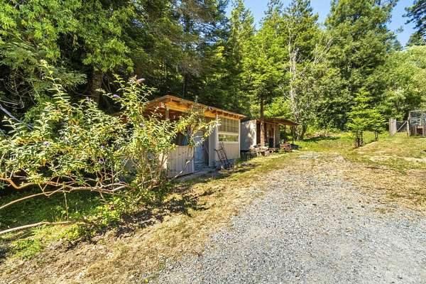 Contingent offer with seller right to cancel within 17 days. Come enjoy your own private 3.92 acres in Sunny Blue Lake! The home offers an open floor plan of 4 bedrooms, 2 baths, 2443 sq ft., where you can see nature from every window. Well-established raised bed garden, mature fruit trees, separately enclosed chicken coop, and duck enclosure with its own mini pond that can water the garden. Come enjoy the sun on the expansive deck, or sit in the covered back porch protected from the sun or rain. Water and power-hook up for an RV, large dog run, and two hobby/potting/storage sheds