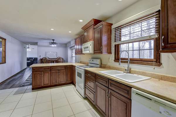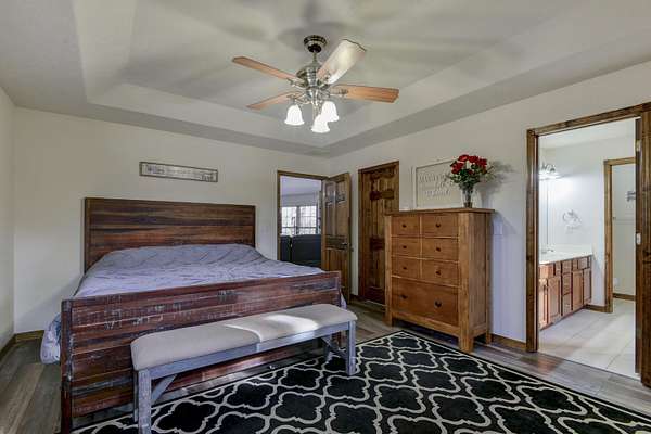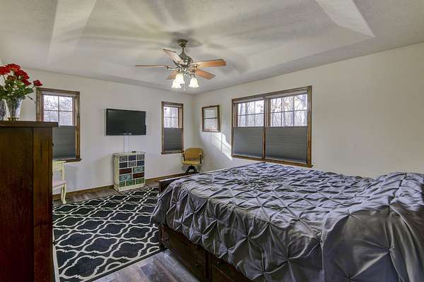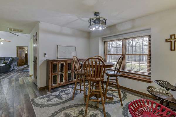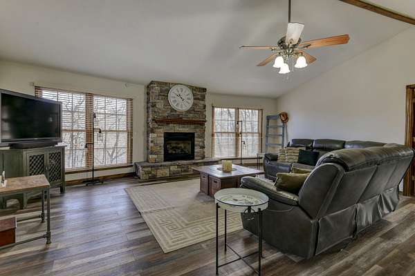 Welcome to 368 Whitfield Lane -- a beautifully maintained 6-bedroom, 3.5-bath home nestled in a private, highly desirable Hollister neighborhood. Offering exceptional space and flexibility, this property is ideal for anyone needing room to spread out, multi-generational living, or separate guest quarters.The main level features a bright and spacious layout with luxury vinyl and tile flooring. The living room boasts vaulted ceilings, plenty of natural light, and a cozy propane fireplace. The kitchen provides generous storage with a large walk-in pantry, abundant cabinetry, and seamless access to the dining area. The main-level primary suite includes a tray ceiling, expansive walk-in closet, and a spacious bathroom complete with jetted tub and walk-in shower. Three additional main-level bedrooms provide comfort and convenience for family or guests.The walk-out lower level is an entertainer's dream, offering a massive family room-- perfect for gatherings, recreation, or home theater use. A gas stove adds warmth on cool evenings, and a projector setup with silver-screen wall paint creates an ideal space for movie nights or watching the big game. The convenience of a second kitchen with bar enhances the lower-level functionality for multi-family living. This level also includes two additional bedrooms, a rustic half bath, laundry room, and a utility room.Step outside to find two decks overlooking a peaceful wooded backdrop alive with wildlife, along with a small fenced area perfect for pets. The home also offers peace of mind with a newer exterior HVAC unit and a two-year-old roof featuring a 50-year Class UL4 hail-resistant shingles.All of this is located just 1/2 mile from Big Cedar Lodge, Top of the Rock, and Thunder Ridge Amphitheater -- and only minutes from Branson and Hollister conveniences, dining, and attractions.Spacious, inviting, and ideally located -- this exceptional property is ready to welcome you home.