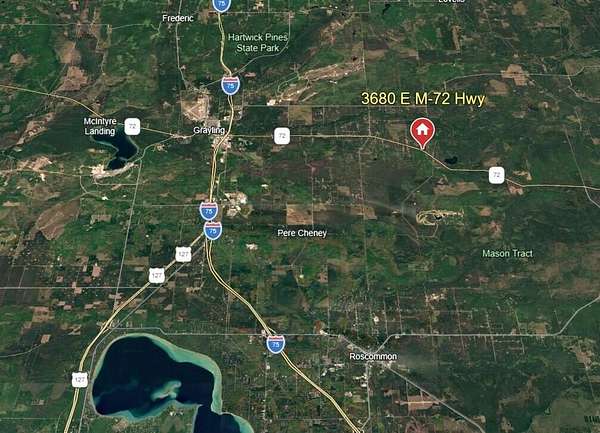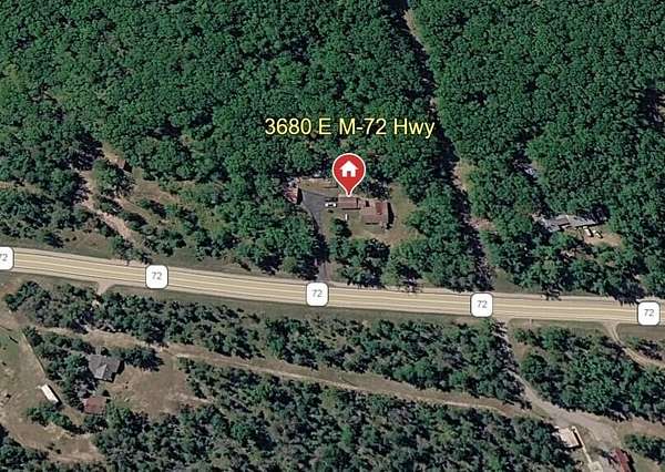 East on M-72 from Grayling for 8.7 miles - house on right.