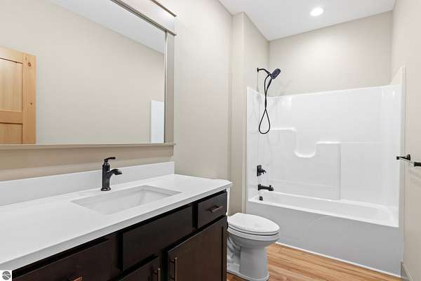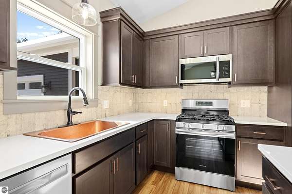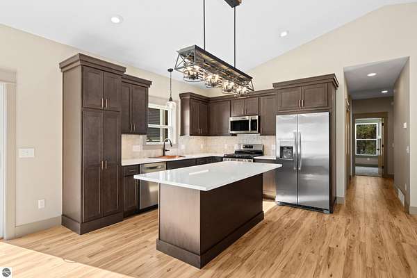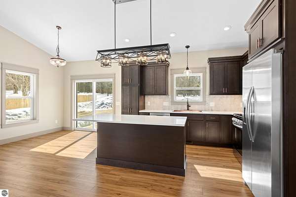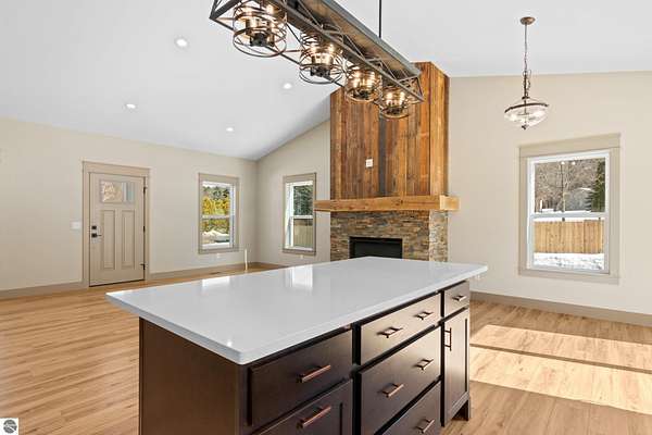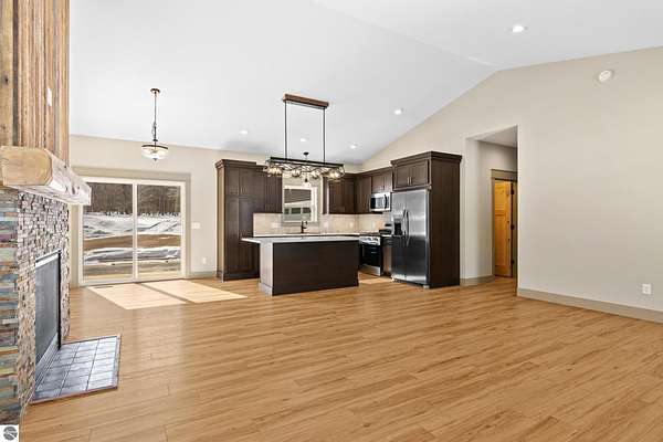 This tastefully designed 3 bed, 2 bath with private master, new construction home boasts impeccable craftsmanship and stylish finishes throughout. From the moment you step inside, you'll appreciate the attention to detail that makes this home truly special. The open-concept kitchen features a gorgeous hammered copper sink and quartz countertops. The gas fireplace is a true highlight, with locally hand selected barnwood, and a continuation of flow, with a hammered copper hearth. The full, unfinished basement is plumbed for a third bathroom, with an egress window for a fourth bedroom, giving you the opportunity to expand as your needs grow. There are 2 additional storage areas in the basement, thoughtfully placed as to allow for floor space. So whether you're hosting guests or enjoying quiet moments, this home is sure to impress. A 24x24 finished garage, offers both space and functionality. Set on 1.5 acres, this property offers plenty of area for outdoor activities, privacy, and room to enjoy nature. Located just minutes from the beautiful lakes and the Vasa Trail, it's ideal for outdoor enthusiasts who appreciate the peace and beauty of the area. Every detail of this custom-built home has been designed to blend modern convenience with timeless style.
