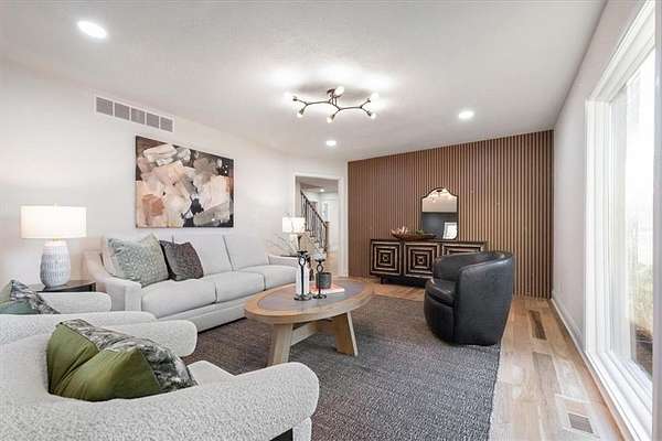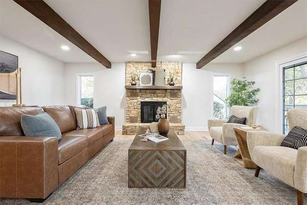 Incredible Opportunity!!!! Beautiful, Peaceful, Serene 2 Story nestled on 2 acres in Blue Valley School District. Well appointed with gleaming hardwood floors, new kitchen with quartz countertops, new cabinets and appliances. New Exterior Siding, gutters, interior paint, flooring, 5 all new bathrooms. Primary has a massive closet with a separate washer and dryer hookup. Finished basement with bar area. Separate work from home office. Yard is ideal for a large pool & entertainment space. New septic tank. Room for an additional shed/workshop/garage. Space for Boat and RV parking.
