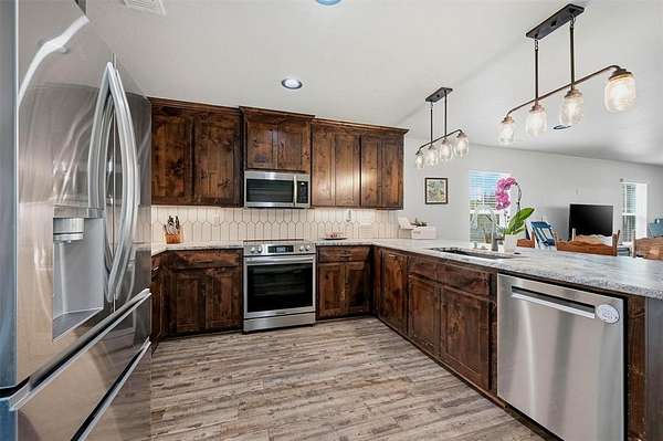 Built in 2024, this beautifully designed three bedroom, two and half bath home offers the perfect blend of modern style and a peaceful, serene setting. One of the standout features of this property is the incredible backdrop step out onto the back porch and take in sweeping views of open acreage framed by a stunning tree line. It’s the perfect place to enjoy quiet mornings, unwind in the evenings, or host weekend BBQs with friends and family.