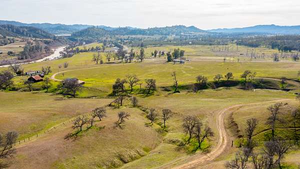 The property sits at the 800 ft. elevation. The property has varied terrain, from flat pastures to rolling hills, to steep hillsides. This beautiful property has road access in the front, with the flat pasture on top and Elk Creek below. The creek traverses the property for over 2,100 ft. The property is partially fenced. It would make a great purebred cattle ranch, vacation getaway, or classic recreational property.