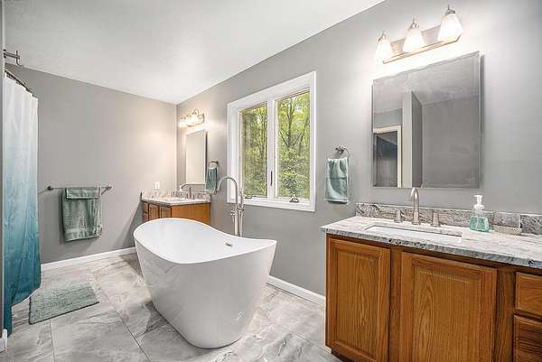 Back on market due to buyers financing! This beautifully updated 5 bedroom, 4 bath, 3 story colonial style home has everything to offer including nearly 16 acres of land filled with wildlife and trees, and foliage. As you enter the main level you will be greeted by a tiled foyer leading to a large open layout. Kitchen has been updated with high end stainless steel appliances, granite counter tops with center island, designer lighting, and all new fixtures to include a pot filler near the stove. Off of the kitchen you will find a formal dining room and spacious open living area with a gas fireplace. Also on the main area is an updated half bath with main floor laundry, pantry, and a mudroom that leads to your very own third floor hobby shop, equipped with a wood burning stove. The second floor of the home is where you'll find the master en suite with a shower, large soaking tub, his and her vanities and a large walk in closet.