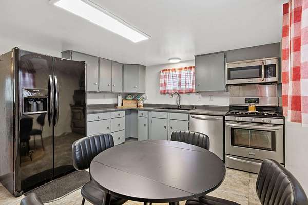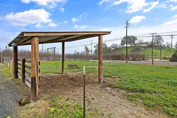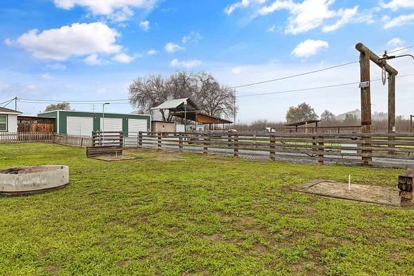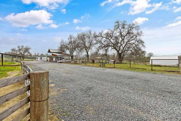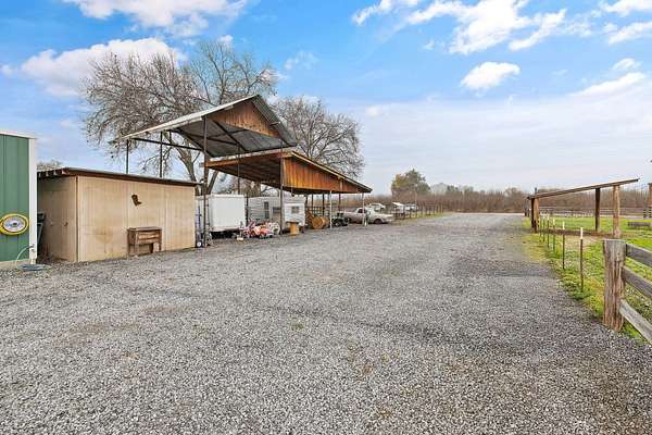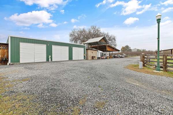 Welcome to your own slice of country living at 36871 Millwood Drive in Woodlake. Set on approximately 8 usable acres across two separate parcels, this unique property offers a rare combination of land, water, infrastructure, and future building potential. A true standout feature is over 700 feet of Cottonwood Creek meandering through the property, creating a peaceful, scenic backdrop and a setting that feels both private and timeless. The land is fully fenced and secured by an electric front gate, making it ideal for livestock, equipment, or recreational use. The property includes a 4-bedroom, 1-bath home offering approximately 1,100 sq ft of living space, featuring a new roof and fresh exterior and interior paint. While modest in size, the home is functional and provides a comfortable base while you plan future improvements or a new custom build. For those needing space to work, store, or create, the property is exceptionally well equipped. Improvements include a 20 x 45 ft shop with three bay doors and 220-volt power, a 10 x 20 ft shed, and a large covered carport suitable for vehicles, RVs, tractors, or hay storage. Multiple livestock pens, corrals, and pastures are already in place, making this an excellent setup for horses, cattle, or other animals. With two parcels totaling 8 acres, there is ample room for a future custom home, while maintaining the existing residence, shop, and agricultural infrastructure. Whether you're looking for a working ranch property, a recreational retreat, or a long-term investment with development potential, this property delivers flexibility and opportunity. Peaceful, private, and rich with possibilities-this is country living at its best. Come walk the land, listen to the creek, and imagine the lifestyle waiting for you here.