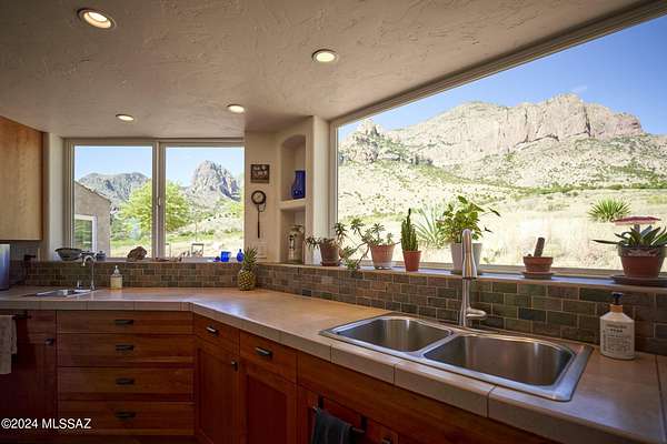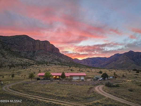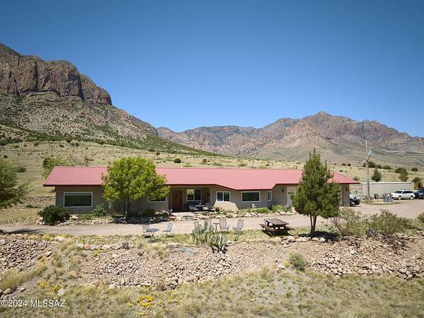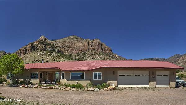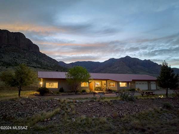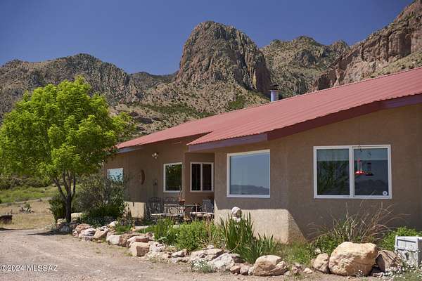 Resting at the base of the Chiricahuas in Portal's picturesque landscape, this custom-built 2391 sq ft home offers the epitome of tranquility & luxury. Open concept great room features living room, dining room, and kitchen with walk in pantry that is a dream for anyone who enjoys entertaining. Split Floorplan with bedrooms on either side of the living space. 1080 sf attached 3 car garage with ample overhead storage and room to set up shop and hobby areas. Home is a metal truss construction with 5'' concrete floors, in floor heating with 5 zones. Plenty of windows to maximize mountain views. Portal is a popular destination for outdoor enthusiasts, night sky watchers, birders, etc. 10 minutes to Rodeo NM, 60 minutes to Douglas AZ for grocery, medical, and hardware.