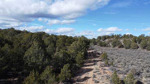 The property features several roads and trails, with a major draw with rock outcroppings on one side. This road starts at the northern edge, loops through the center of the property, and ends at the far northeast corner. Providing great access to most of the property. The property is mostly fenced along the perimeter with metal posts and barbed wire