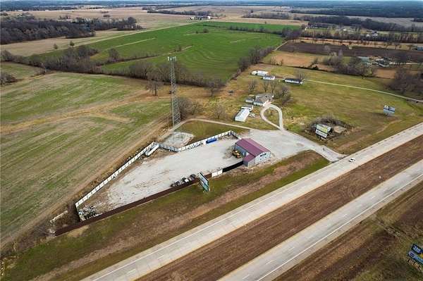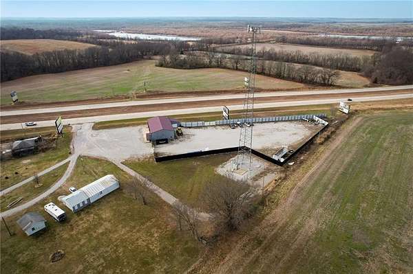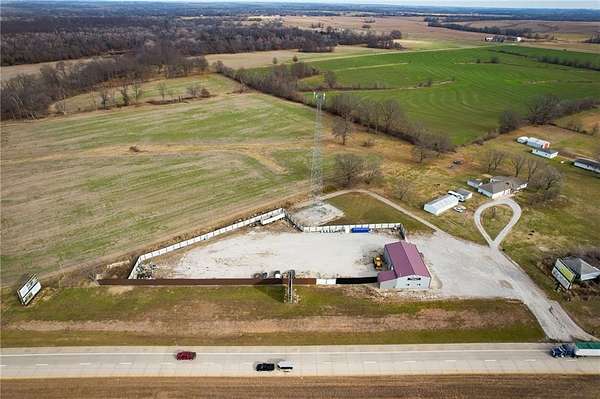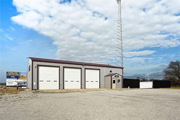 Property Overview: - Lot Size: 2 acres -Commercial - Retail or Vehicle Related Building Features: - Main Structure: - 3-Car Bay: Approx. 14' doors with a drive-through feature leading to a secured, fenced lot. - Office Entrance: Front mudroom providing convenient access to the office space with half bath - Kitchen & Dining Area: Fully equipped kitchen adjacent to a dining room, ideal for staff gatherings or client meetings. - Full Bathroom: Complete restroom facilities located behind the office. - Non-Conforming Room: Additional space behind the kitchen, featuring windows that overlook the fenced lot. - Attached Outbuilding: 45' x 38' with versatile usage options. Ceiling height 16'-22'. Plumbing, electrical and lighting (mix of LED and fluorescent).Poured Concrete slab with floor drain, metal panels, plate glass windows in metal frame, Glass and metal doors are in metal frame, Roof is pitched, standing seam metal. - Upper Level: - Bedrooms: Two spacious 20' x 18' bedrooms upstairs, each with access to a shared full bathroom. Property Highlights: - Recently remodeled with modern finishes and ample natural light. - Tons of space for various commercial or residential uses. - Ideal for businesses requiring office space, storage,on-site living and outdoor accessibility. - Fenced lot provides security and privacy for your operations. Access & Visibility: - Easy access off MO-7, ensuring high visibility and convenience for clients and customers. Potential Uses: - Ideal for a variety of commercial ventures, including offices, workshops, or combined living/working spaces.