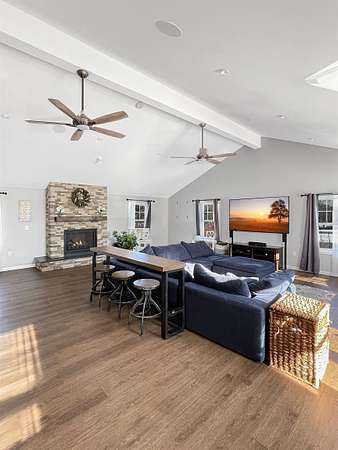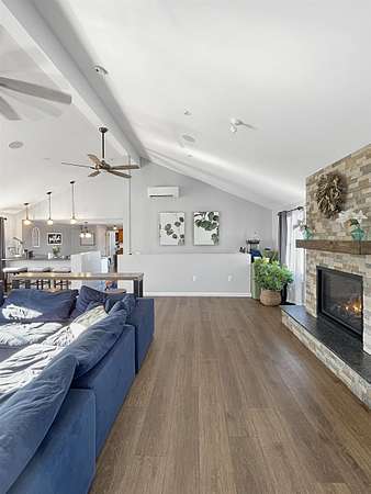 From the outside, it's a classic Cape. Inside...there's more than you expect. Welcome to this 3-bedroom, 1.75 bath home set on 1.5 level acres in a peaceful Northwood setting, offering 2,446 sq ft of thoughtfully expanded living space -- plus bonus areas you need to experience in person. Enter through the oversized 2-car garage and head upstairs into the heart of the home -- a spacious kitchen featuring stainless steel appliances, abundant cabinetry, generous counter space, and a large portable island perfect for coffee, casual meals, or gathering with friends. Just beyond, the home opens into the impressive 28x28 vaulted great room addition. This Expansive Great Room Retreat features soaring ceilings, recessed lighting, surround sound wiring, a striking stone gas fireplace, and a dramatic arched window that fills the room with natural light. Movie nights, game days, and holidays -- this is the space everyone will gravitate toward. Off the kitchen sits a dedicated office -- ideal for remote work, hobbies, or a quiet reading space -- while the dining area welcomes guests near the main entry. A full bath with laundry completes the main level for everyday ease. Upstairs offers two guest bedrooms, a second full bath, and a primary suite with walk-in closet. But wait...there's more. The lower level opens up possibilities -- a finished gym area, a private sauna to unwind, plus additional space for projects, storage, or whatever your lifestyle demands. Outside, enjoy the 1.5-acre lot with dedicated play and picnic area -- space to run, host, relax, and breathe. Picture summer afternoons under the open sky and evenings gathered around the firepit, toasting s'mores and sharing stories long after sunset. The paved driveway offers parking for 6+ vehicles, making entertaining effortless. Wonderful location with convenient access -- approximately 30-45 minutes to Concord / Portsmouth / Manchester. Some homes surprise you. This one invites you to stay. Schedule your private showing