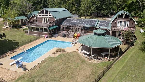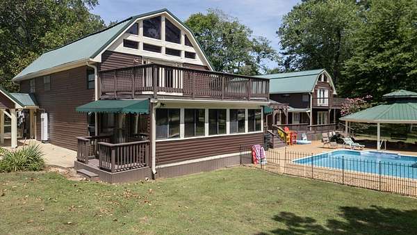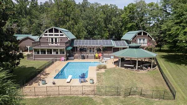 Rare Waterview opportunity! Spacious 4 bedroom 3 bath home w/ many possibilities! Could be used as multi family estate. Main home features 2 kitchens, 2 central heat/air conditioners & also powered by full house Solor System coop with electricity. Inground Chlorine swimming pool on lake side of home liner @ 2 yrs old. Large Gazebo w/ concrete floor and large deck area for family & entertainment. Detached 2 car garage w/ 8x21 workshop area & 2 electric doors w/ pull down attic storage. Add'd Eagle building w/ drive in ramp & passage door. Extra lot features area that was formerly tennis courts currently used for parking w/ 2car carport storage area. 1 bedroom 1bath single wide mobile home w separate septic system, public water, cha rented for $700/month. Address of mobile home is: 186 Holiday Acres.